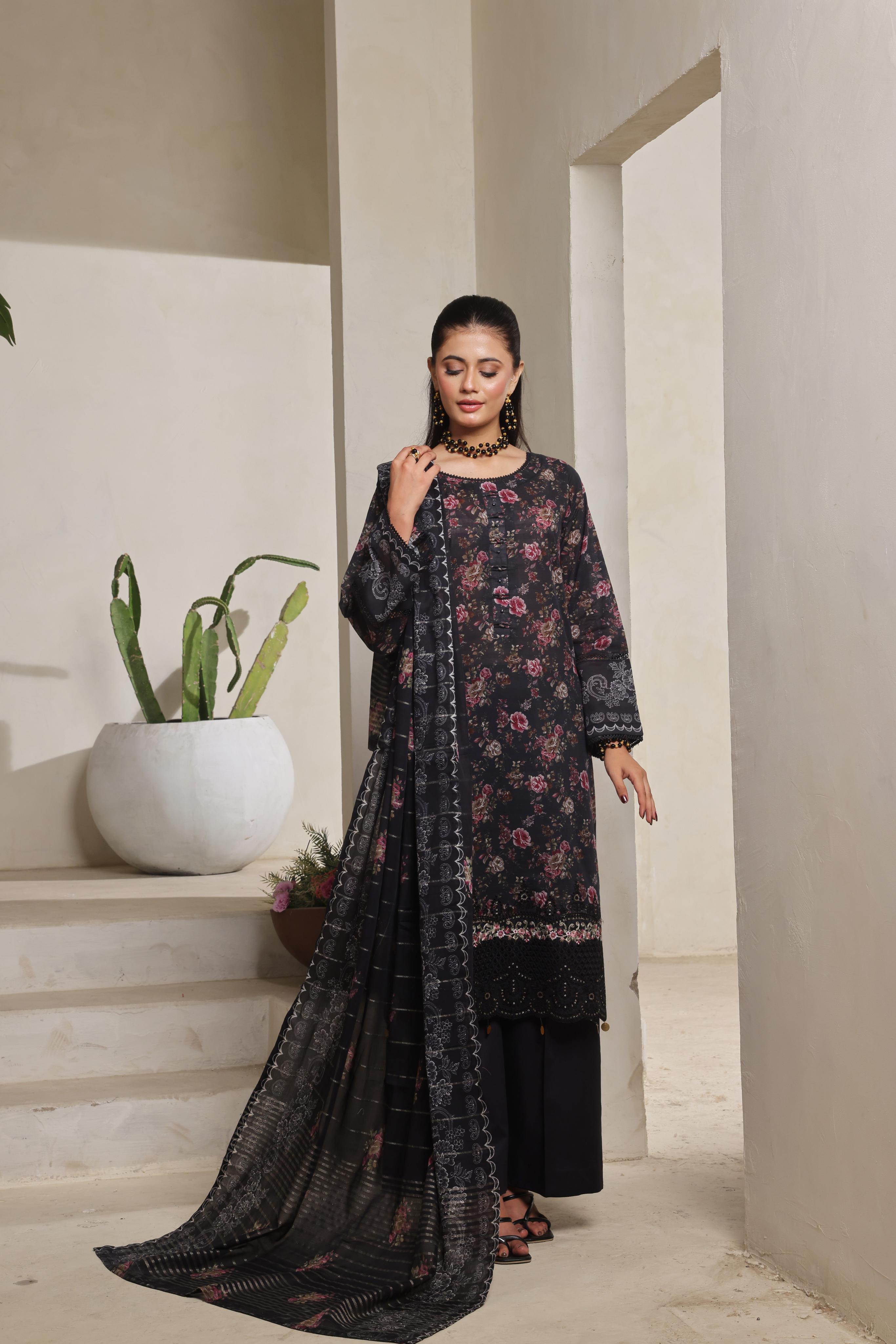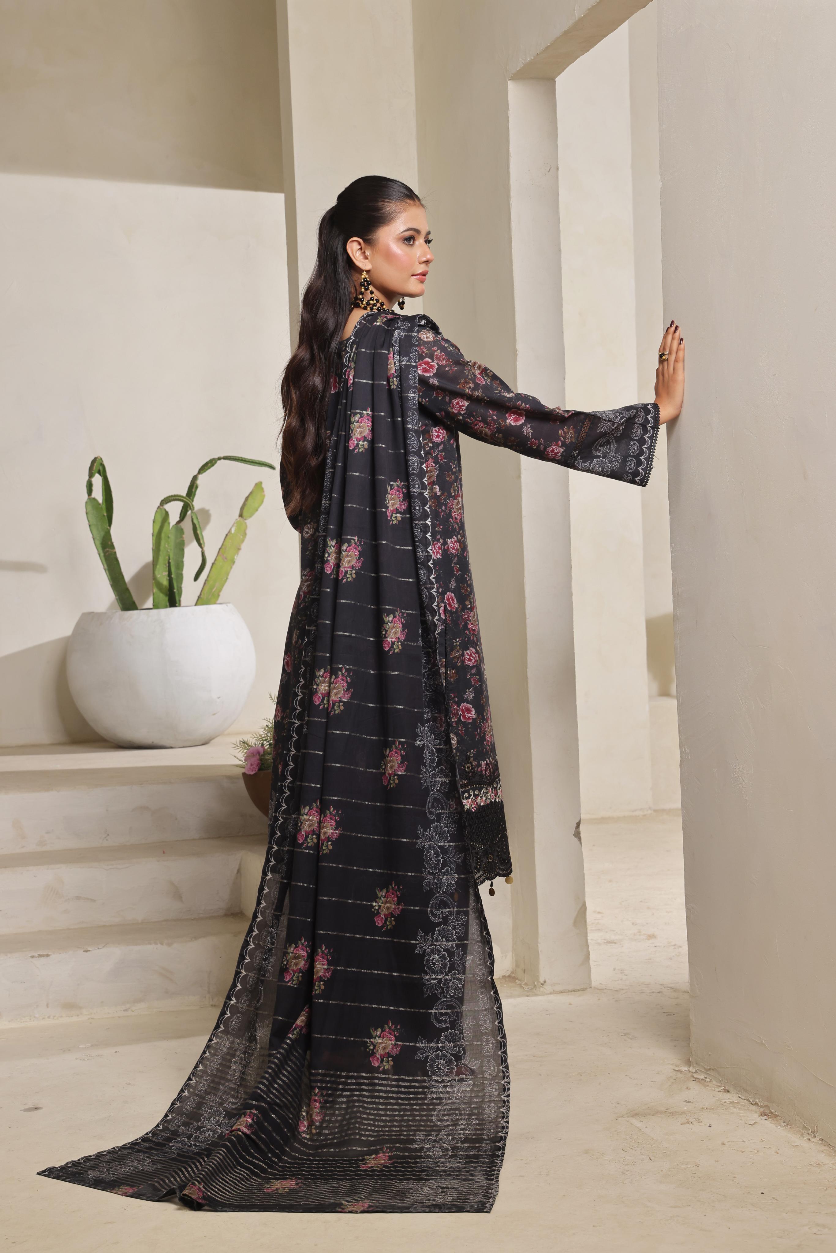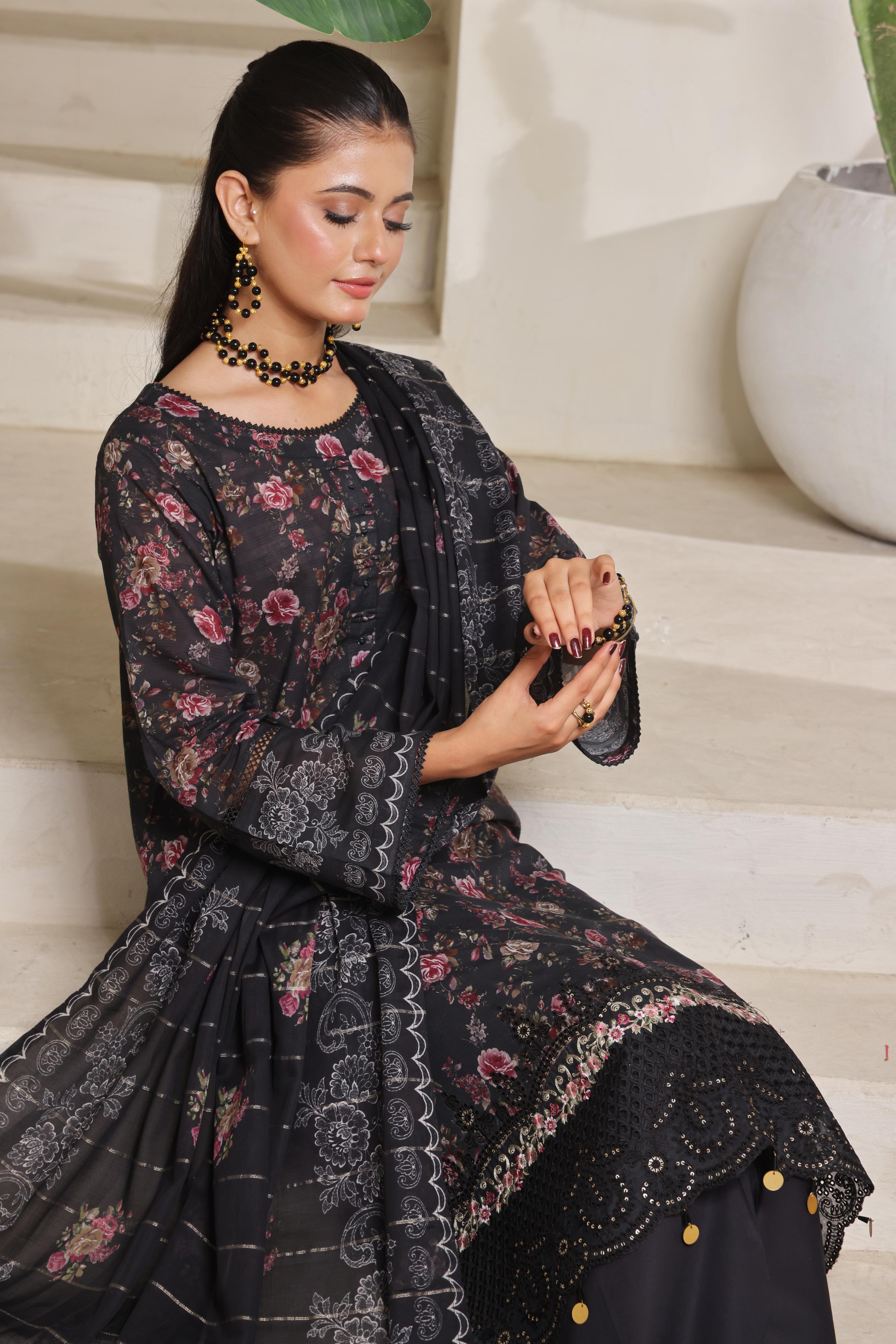 The look is elevated with a Digital Printed Fancy Zari Lawn Dupatta, adding a layer of festive allure and shimmer with every drape.