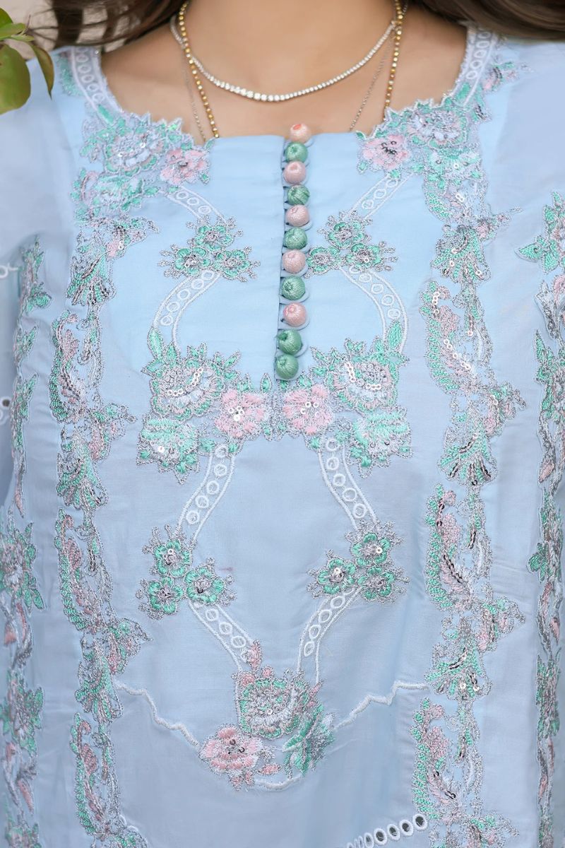 Unstitched suits include only the basic fabric cutouts for shirt, trouser, and dupatta. No additional embellishments such as organza patches or decorative add-ons are included.