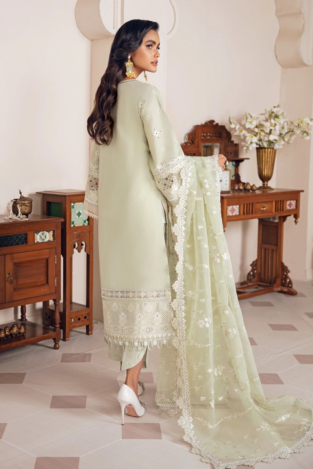 EMBROIDERED SWISS LAWN FRONT (0.85 YARDS) PLAIN SWISS LAWN BACK (0.90 YARDS) EMBROIDERED SWISS LAWN SLEEVES (0.70 YARDS) EMBROIDERED SLEEVES...