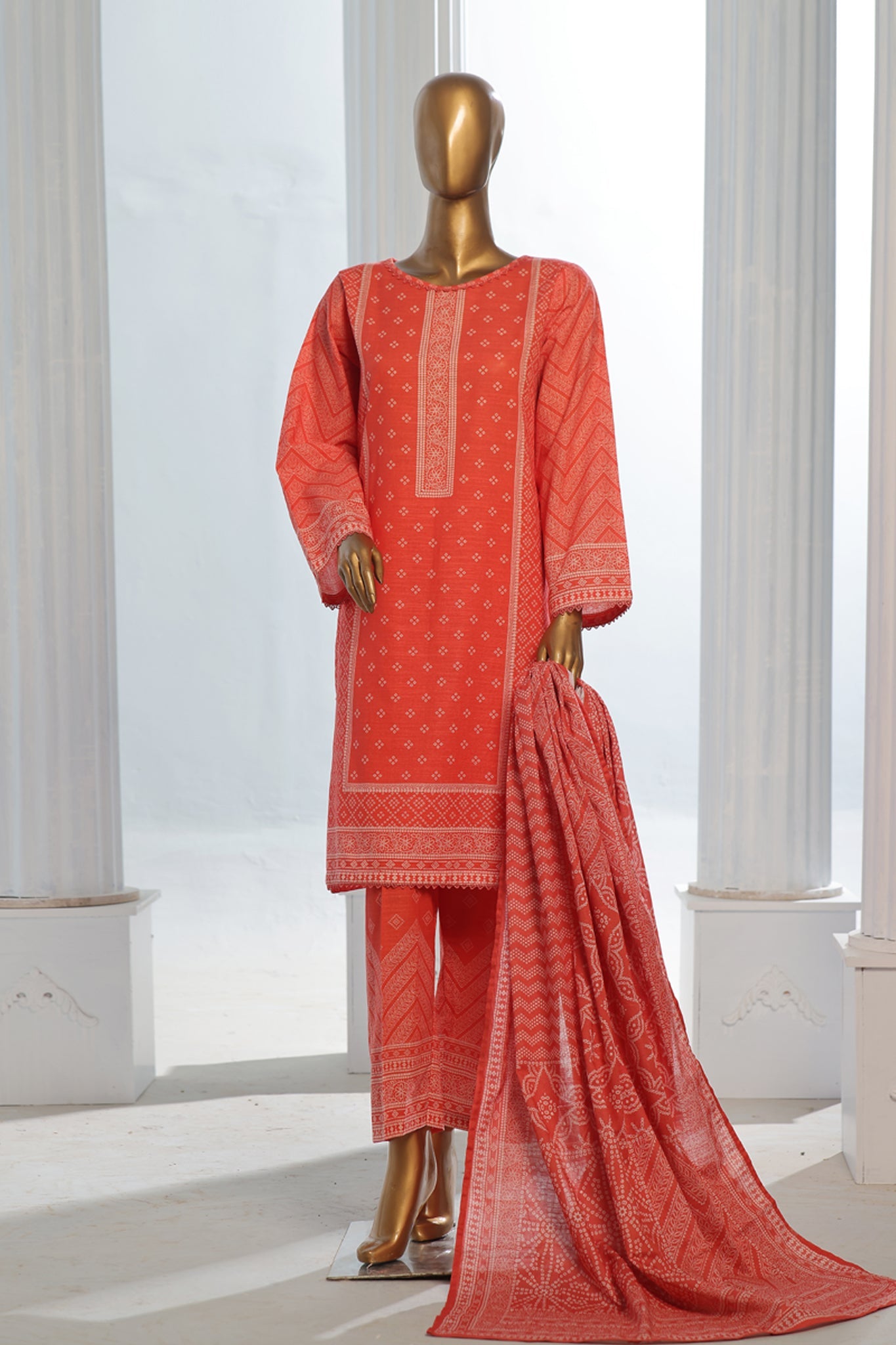 Bin Saeed Stitched 3 Piece Exclusive Printed Khaddar Vol-10 Collection'2024-WK-1233-Red