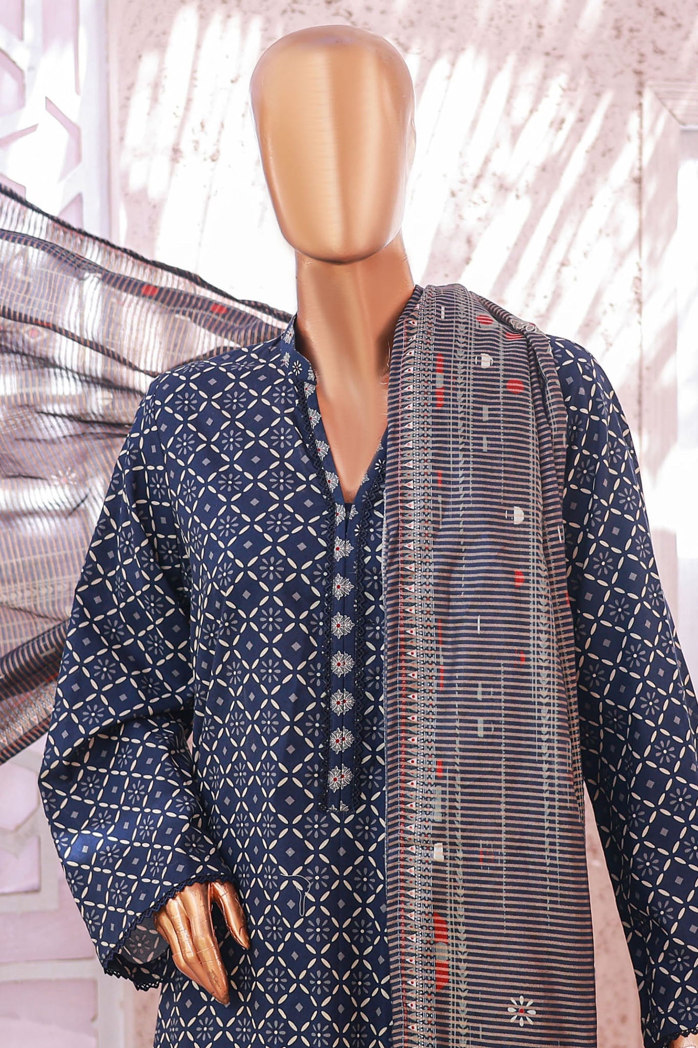 Bin Saeed Stitched 3 Piece Exclusive Printed Lawn Vol-05 Collection'2025-SM-1915-Blue