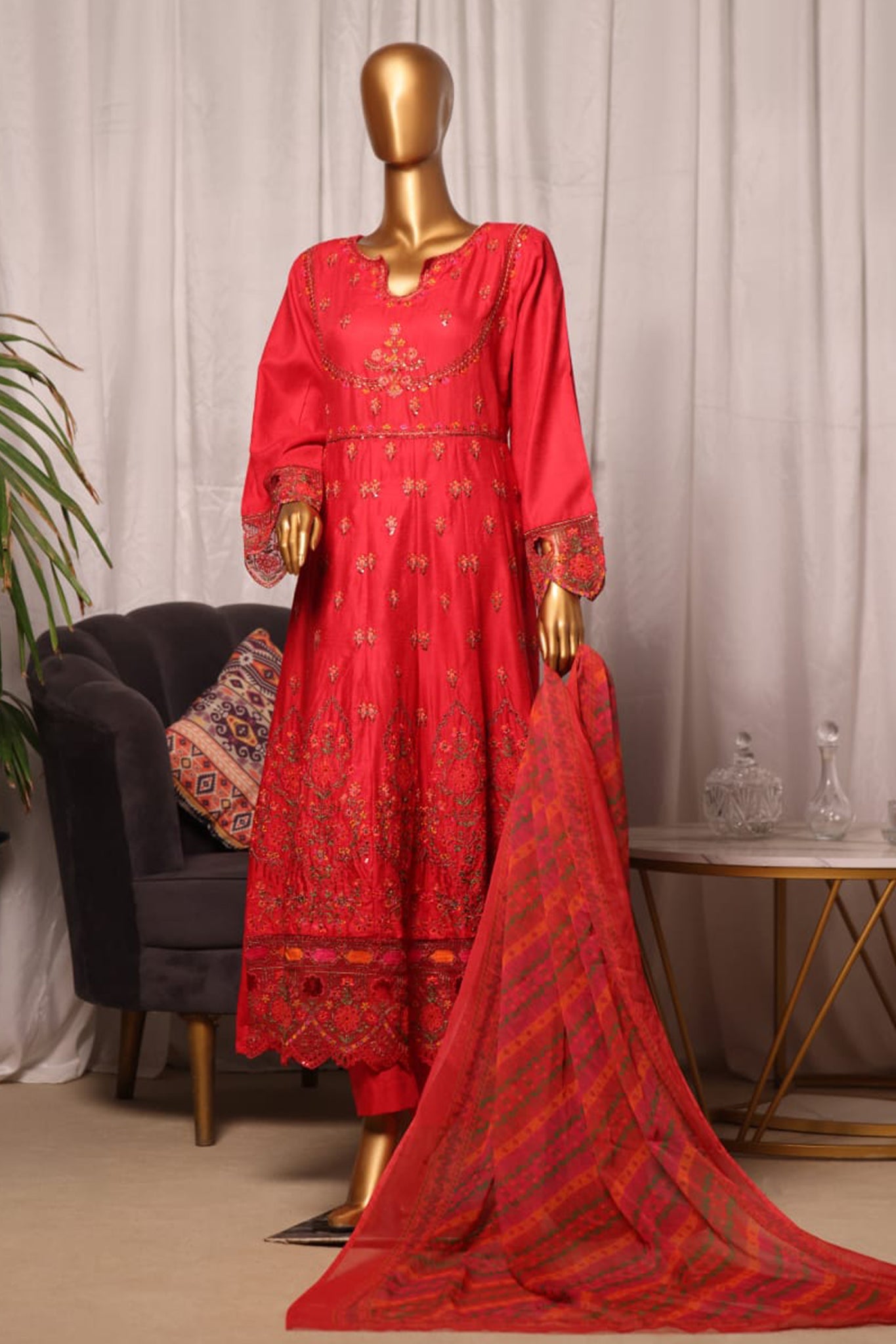 Bin Saeed Stitched 3 Piece Festive Emb Jacquard Frocks Collection'2024-BNS-1032-Red