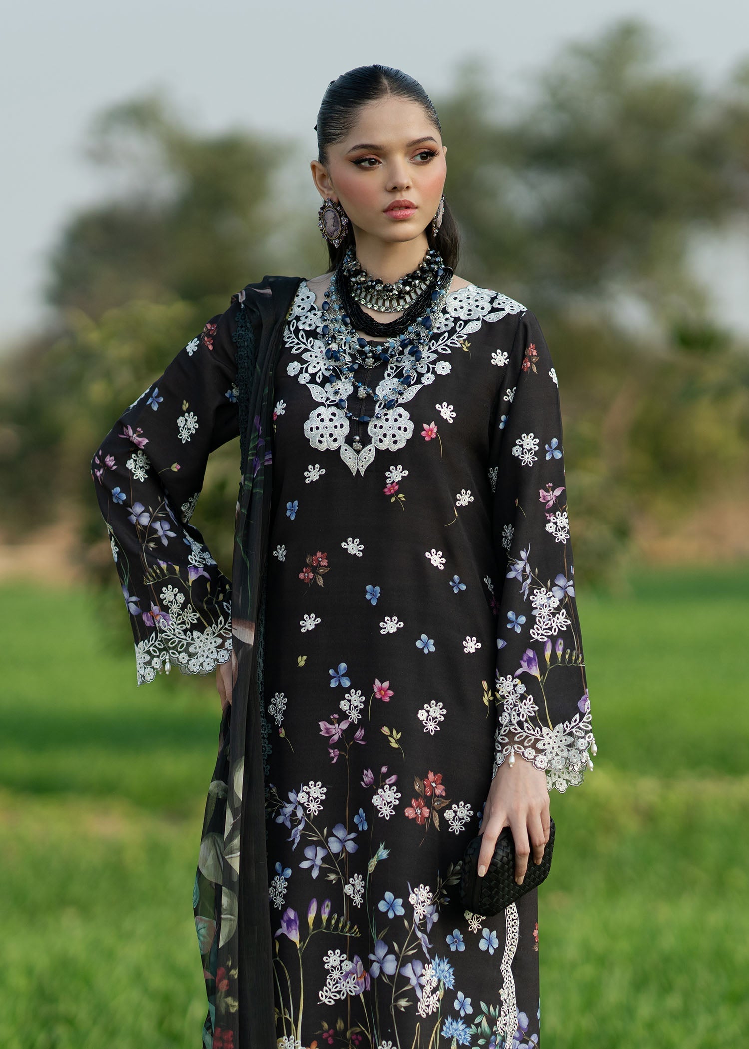 • Chikan-kari on Digital Printed Sleeves (Lawn)