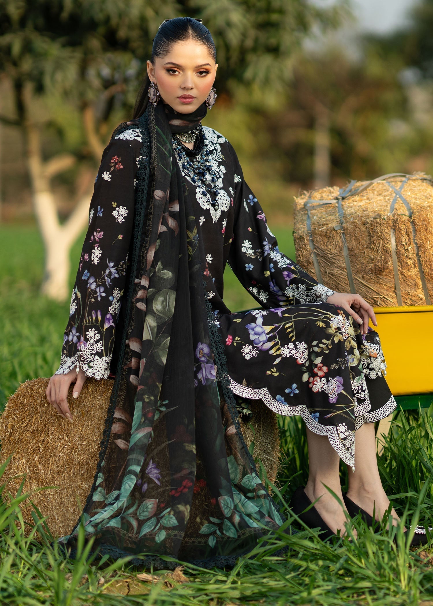 • Embroidered sleeves border (Organza)