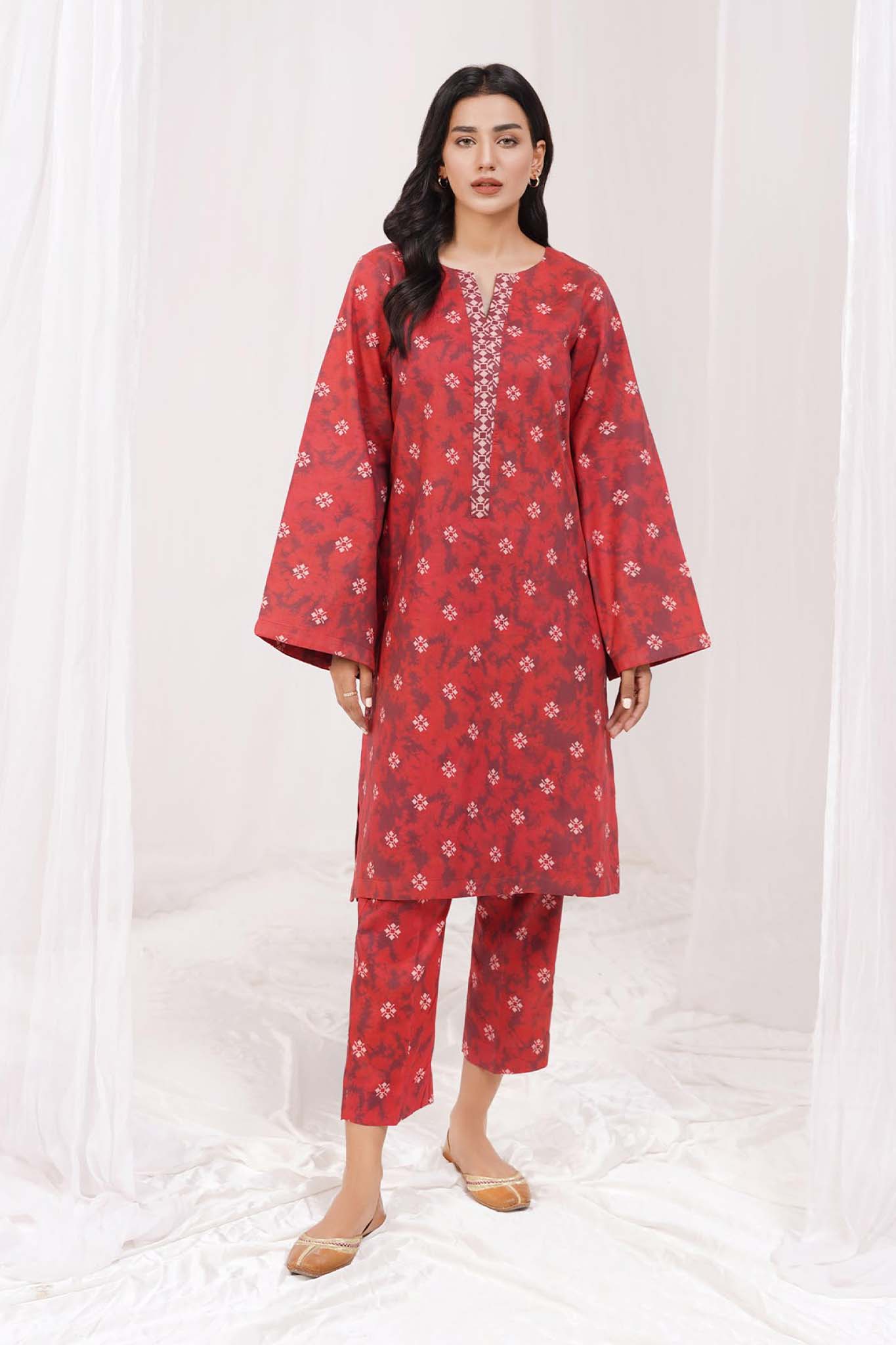 Blumm by Esra Stitched 2 Piece Printed Cambric Collection'2022-BES-01-Red
