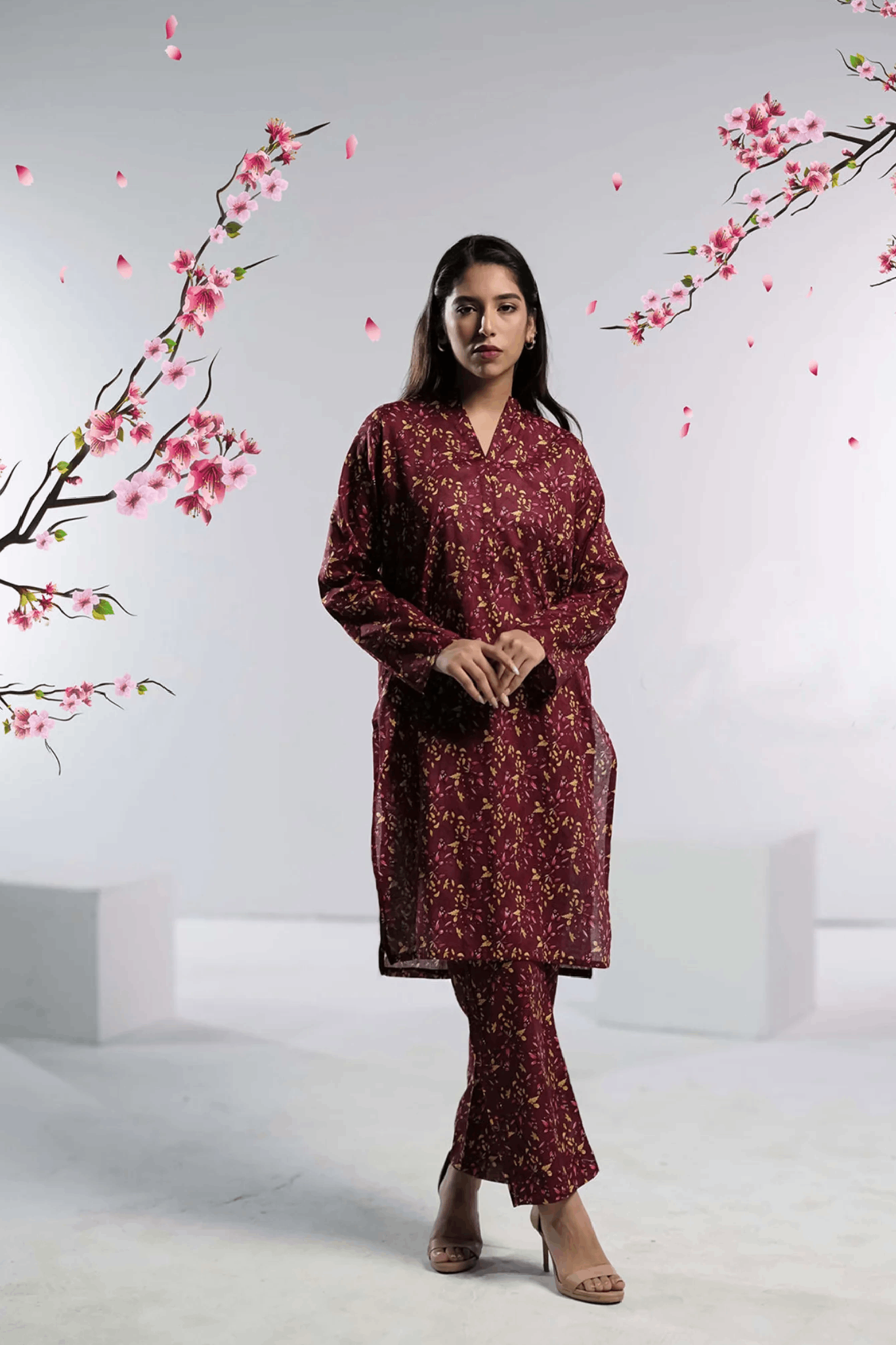 Step into style with our Burgundy Printed Co-ord Set, a perfect blend of boldness and elegance. This set features a rich burgundy base adorned with vibrant, multi-colored prints that create a striking visual appeal. Made from high-quality, breathable fabric, both the top and trousers are designed to offer maximum comfort while making a fashion statement. The top showcases a flattering cut with unique print patterns, and the trousers feature a complementary print that ties the look together effortlessly.