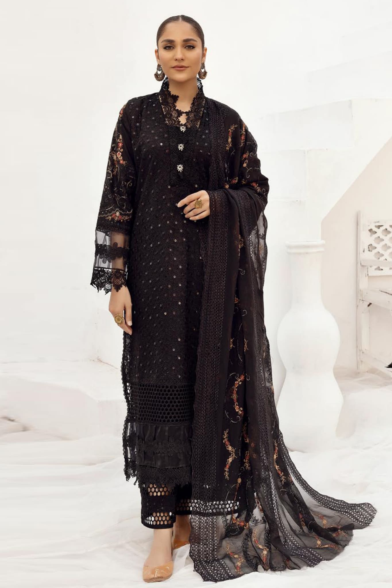 Premium Embroidery Lawn With Luxury Embroidered chiffon Dubatta Trouser Embroidered Front boring : 1.5 yards Bazu boring : 0.75yards Back...