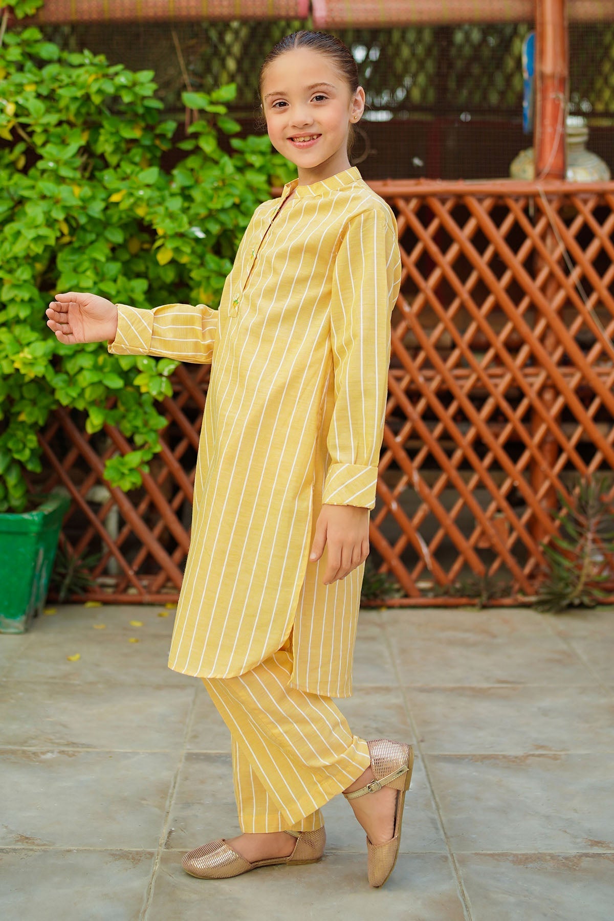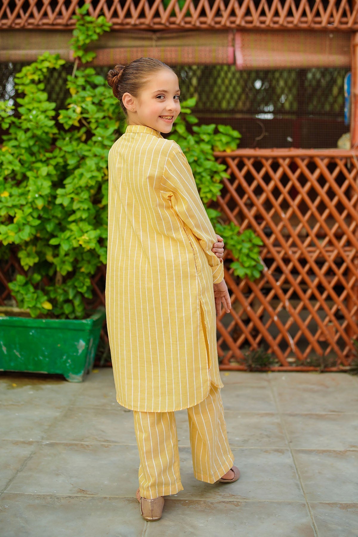 Top: Yellow Chambray Cotton KurtaBottom: Yellow Chambray Cotton Trouser