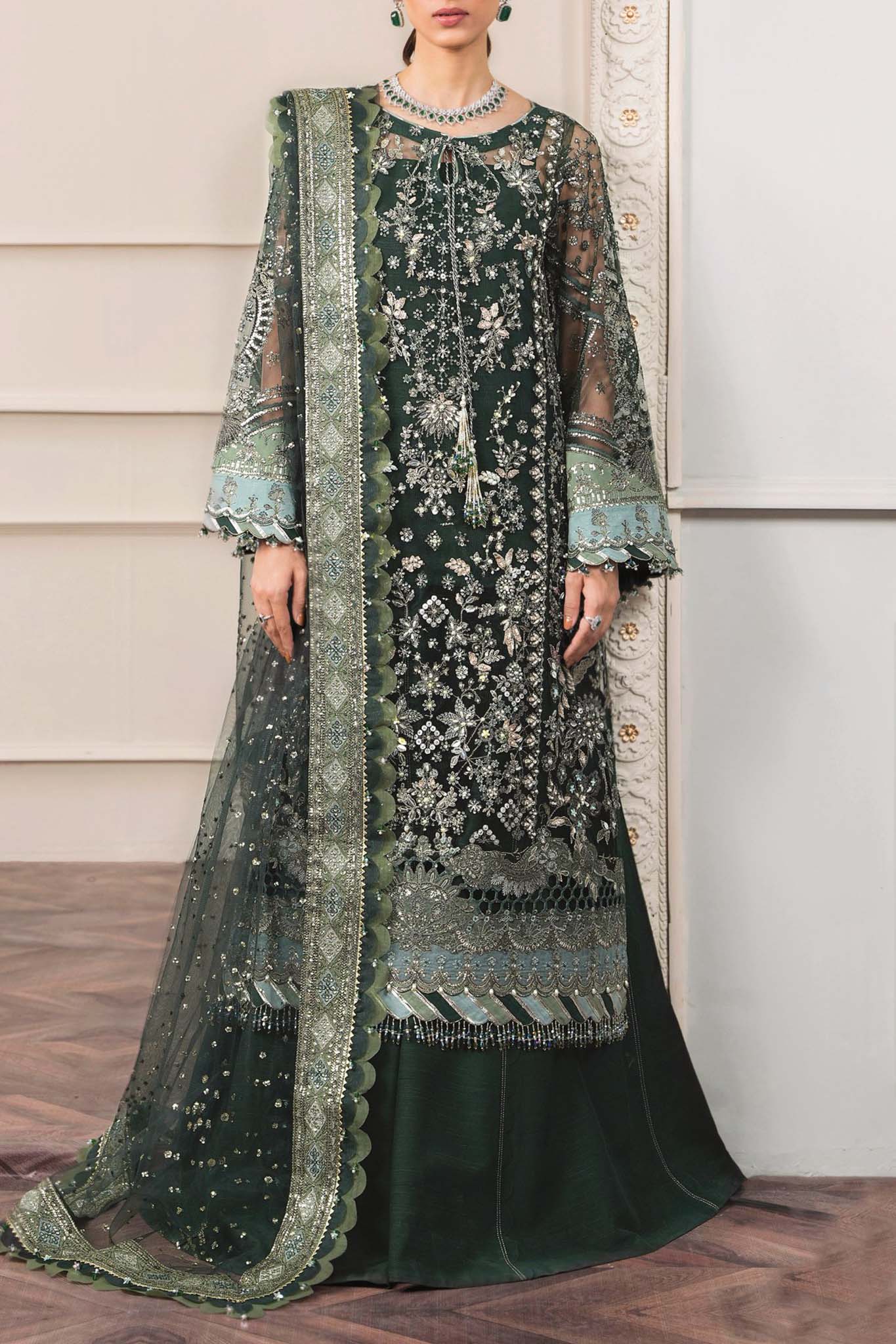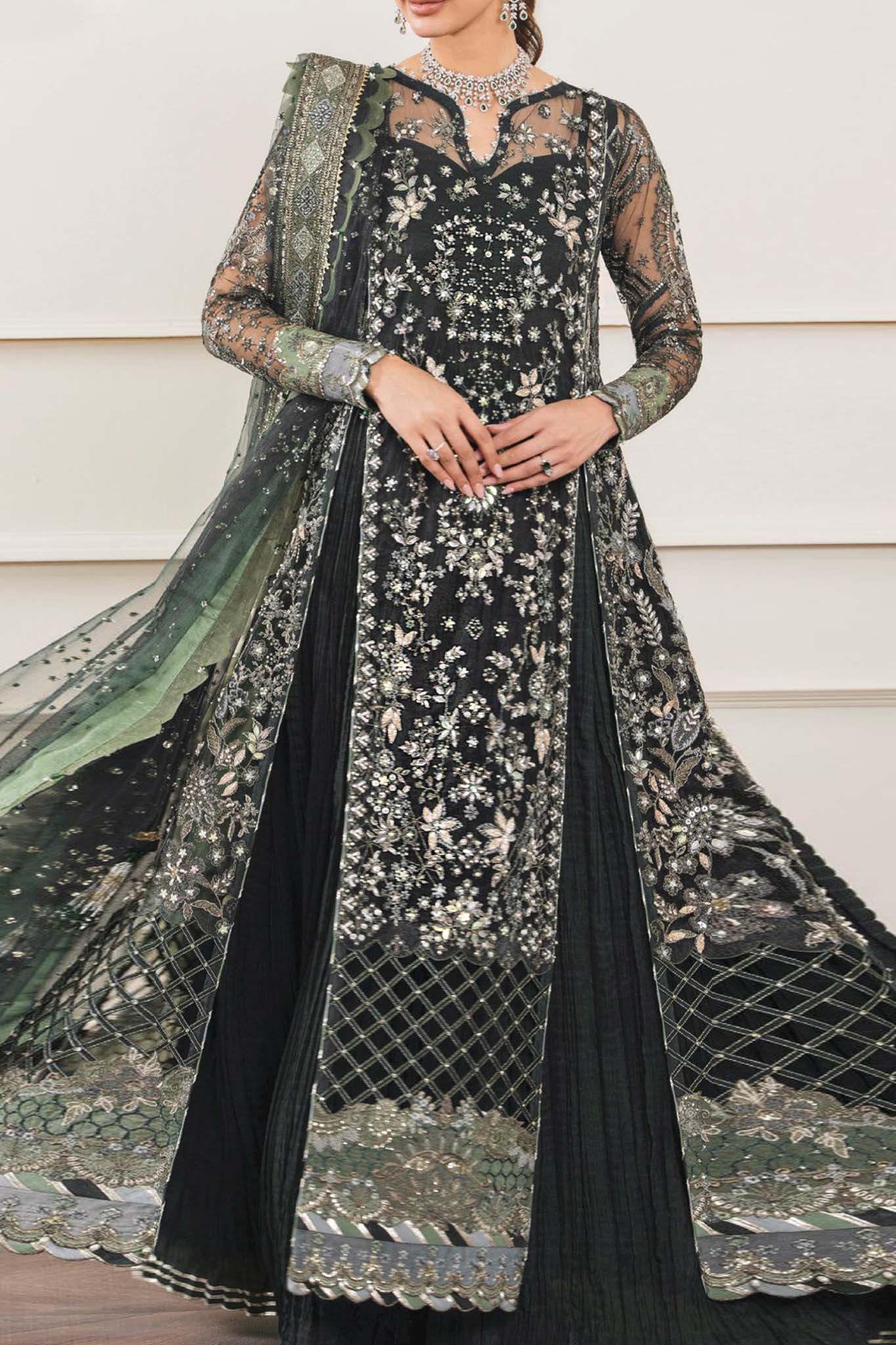Embroidered Net 3 Piece Suit Embroidered And Handwork Net Front Panel 1 Pc 0.40 Yards Embroidered And Handwork Net Side...