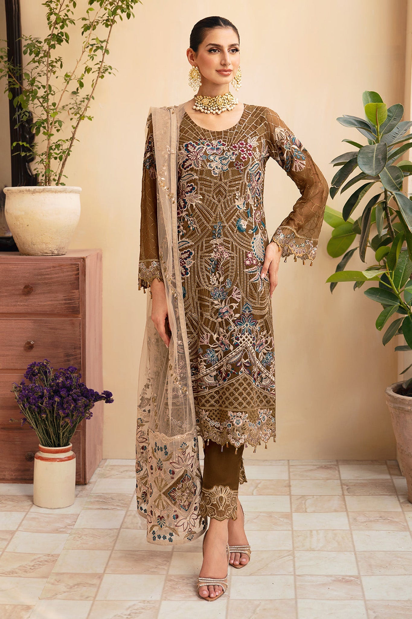 3 Piece Luxury Bamber Chiffon Unstitched Suit