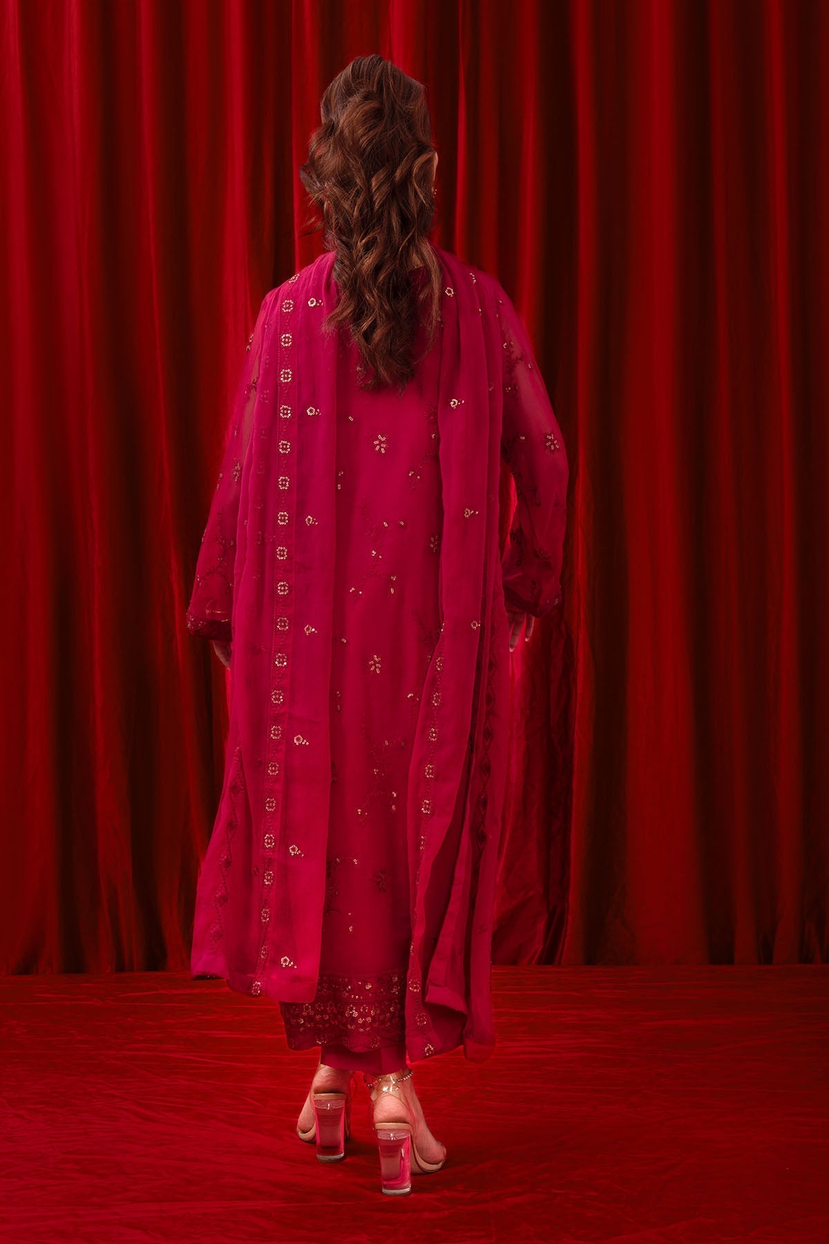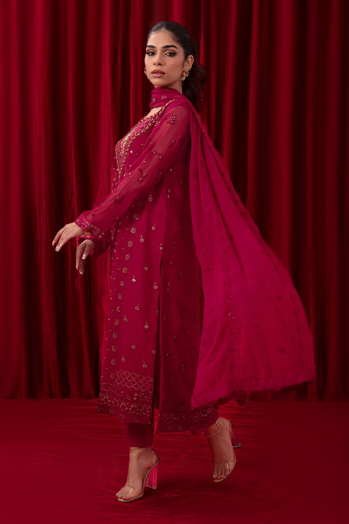 Dupatta: Magenta Pink Chiffon Dupatta with Embroidery"