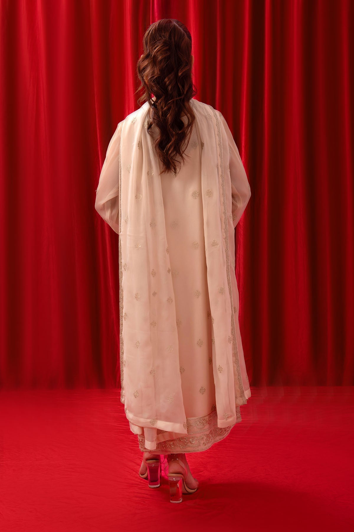 Dupatta: Beige Chiffon Dupatta with Embroidery"