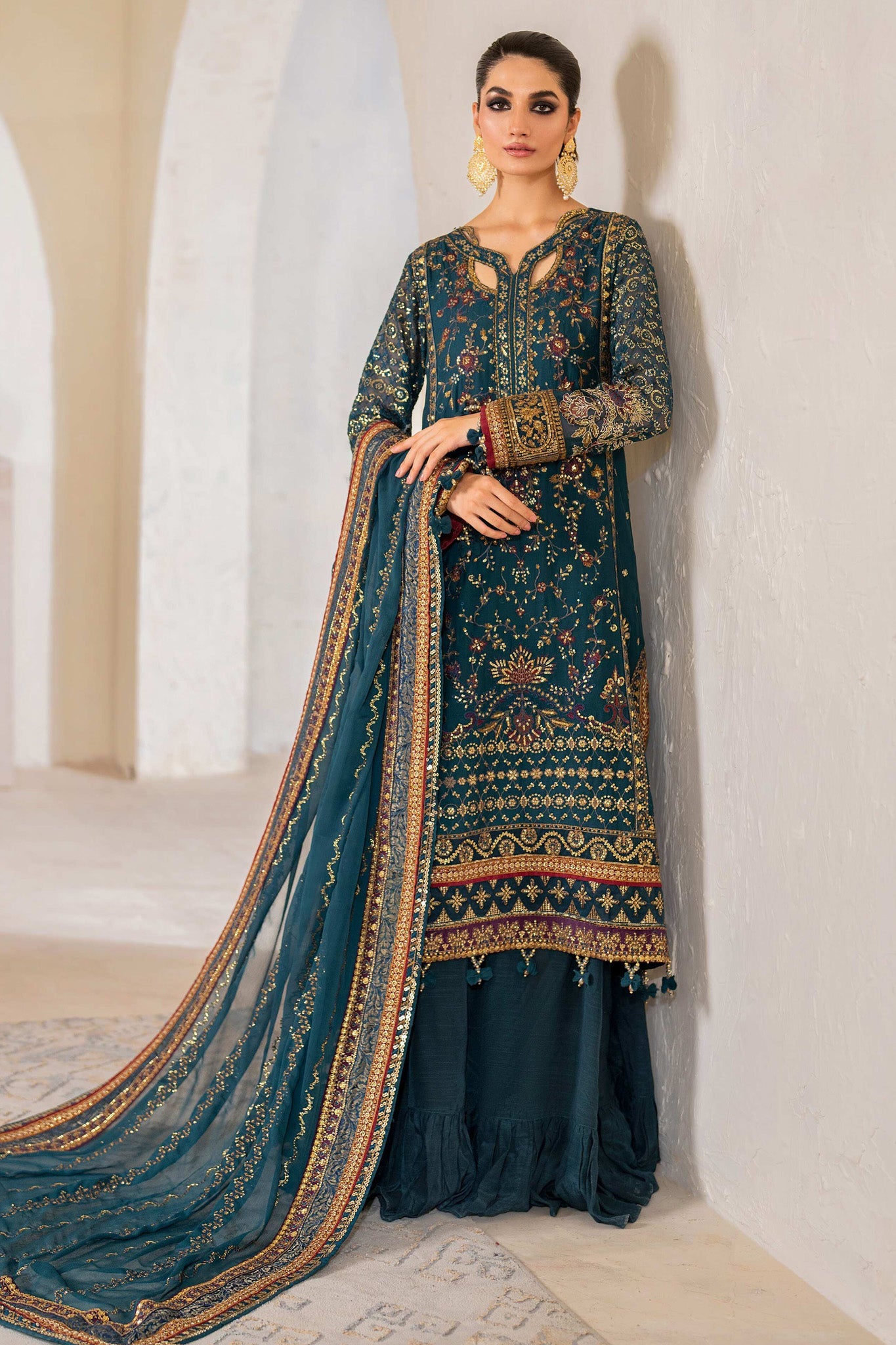 Shirt Center Panel: Embroidered Chiffon (1 Pc) Shirt Side Panel R+L: Embroidered Chiffon (2 Pcs) Shirt Back: Dyed Chiffon Neckline:...