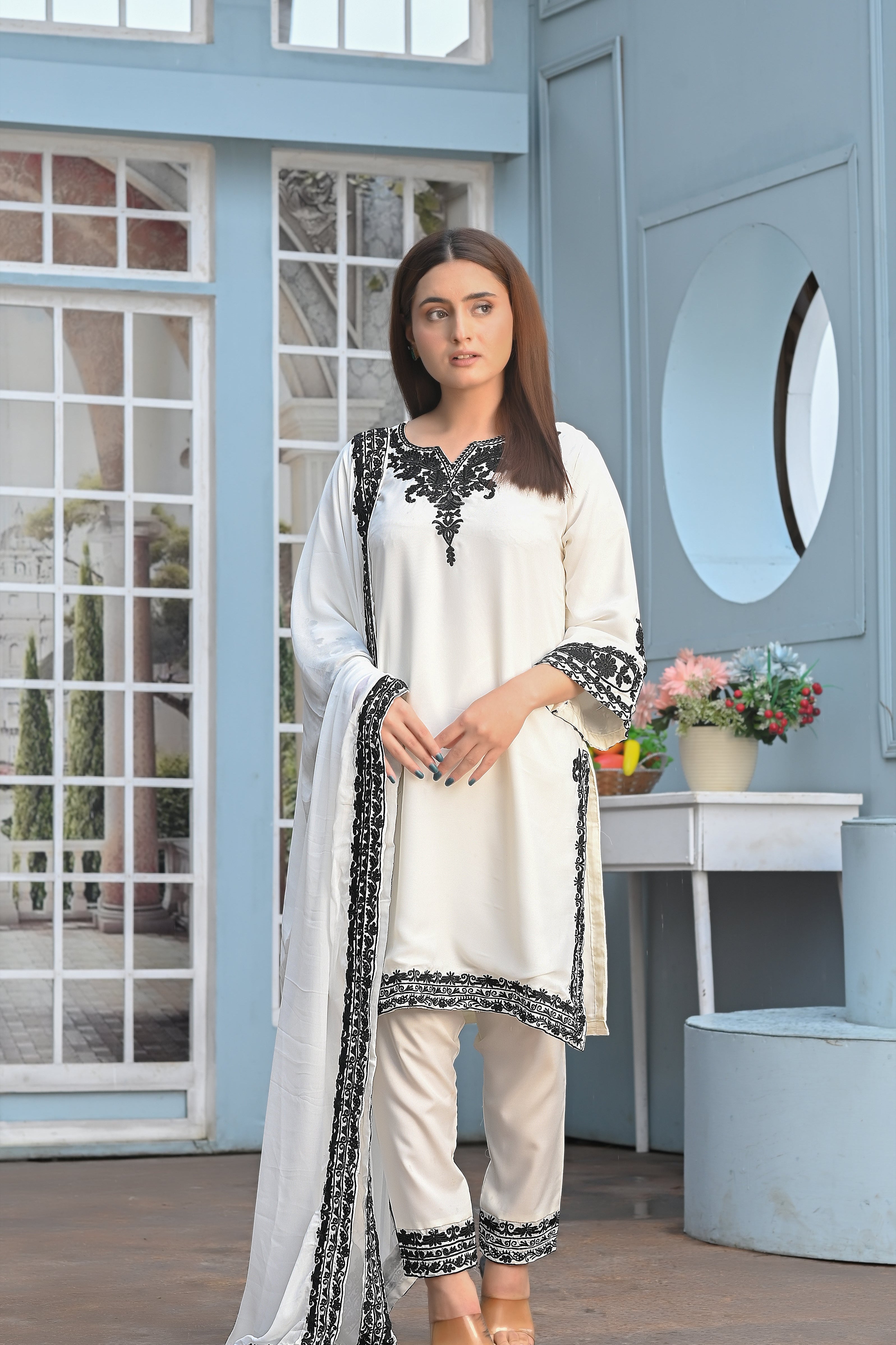 -Embroidery Nechline n 3-side daman with embroidery sleeves