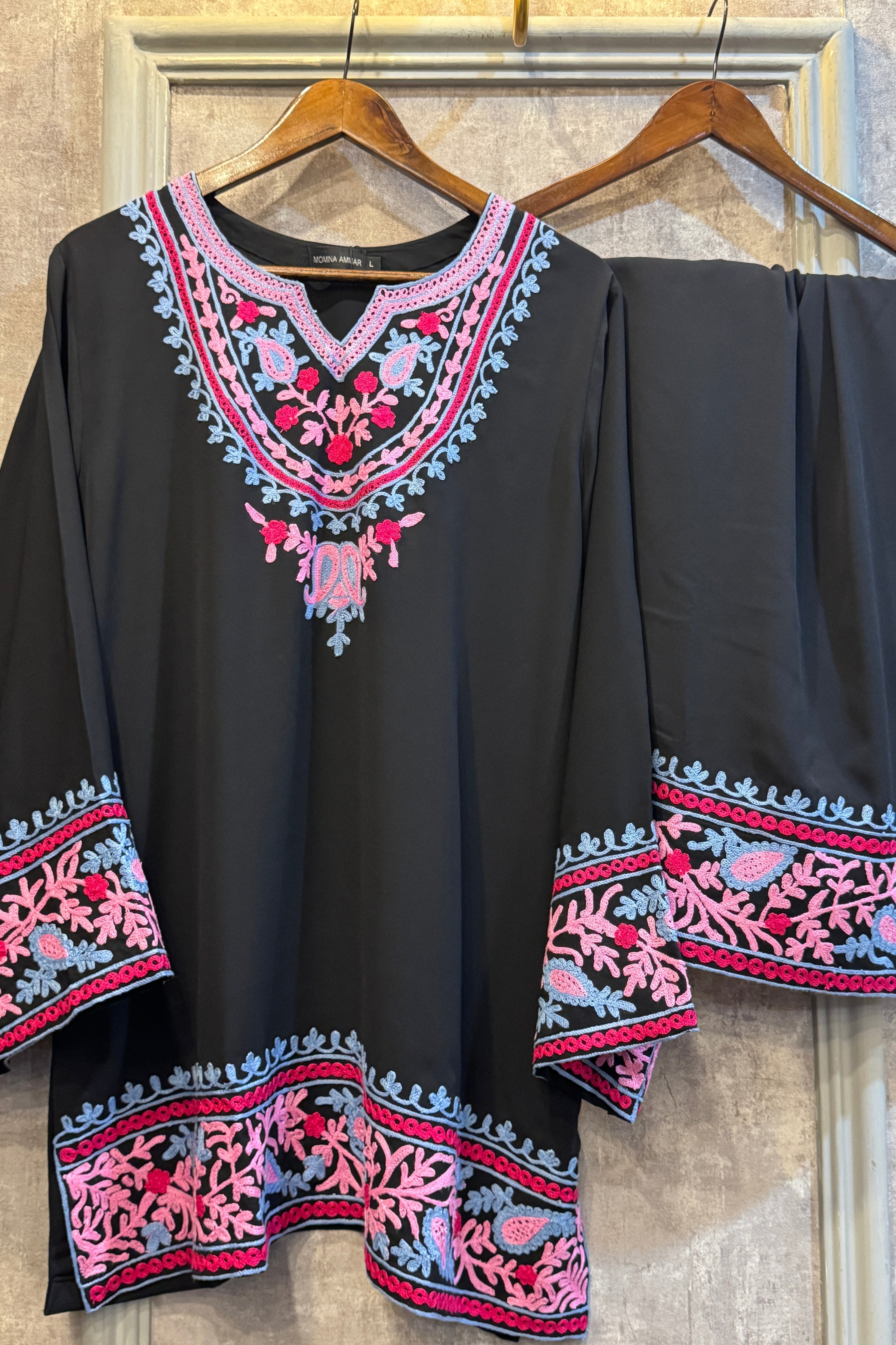 Whether you're attending a wedding, a festive gathering, or simply looking to make a stylish statement, this outfit promises to turn heads. Embrace the beauty of traditional craftsmanship with a contemporary twist, and enjoy the effortless elegance that this black embroidered ensemble brings to your wardrobe.