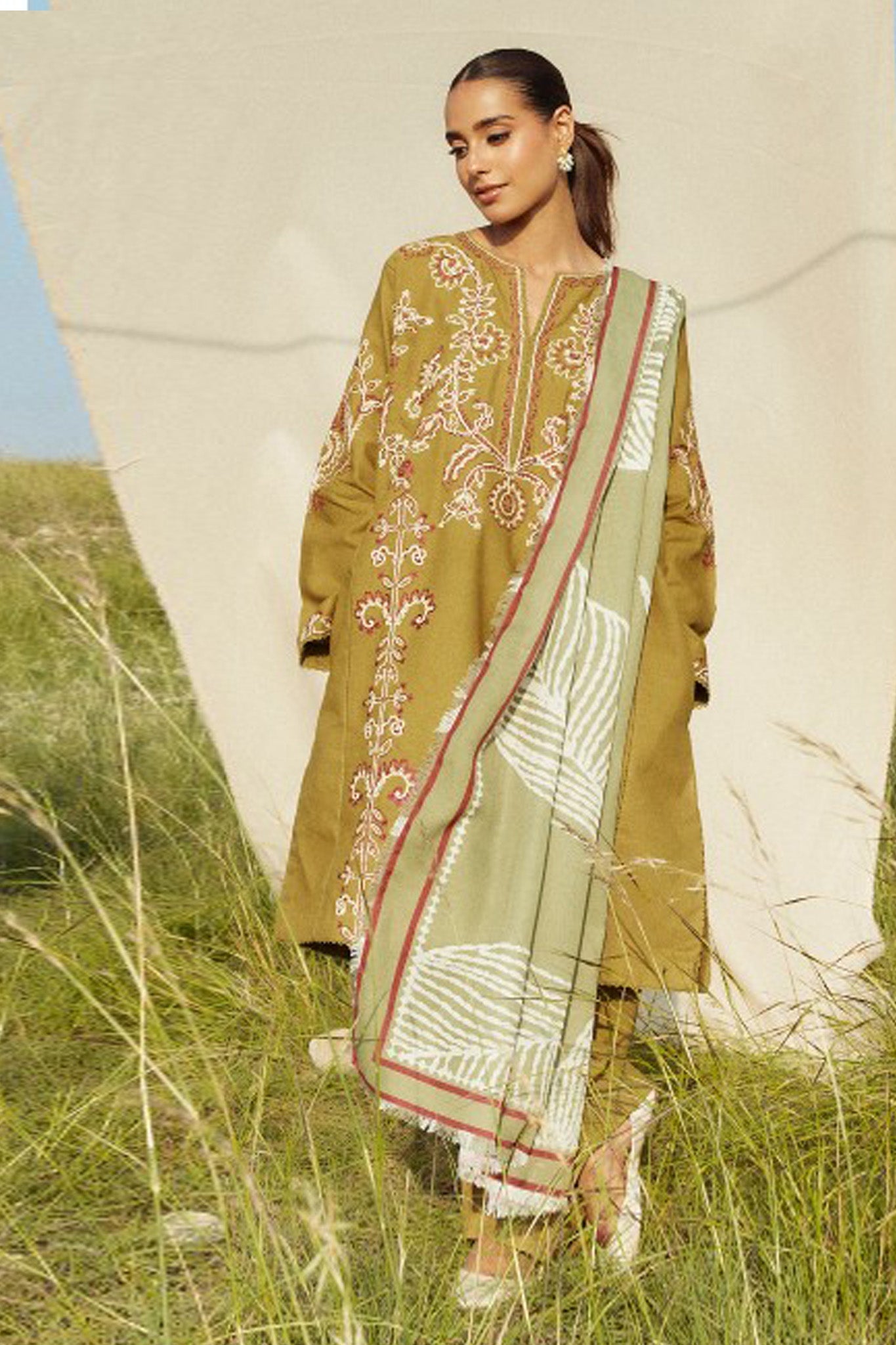 Embroidered Khaddar Front 0.7 Mtr Embroidered Khaddar Sleeves 0.7 mtrs Plain Khaddar Back 1 Mtr Plain Khaddar Trouser 2 Mtr...