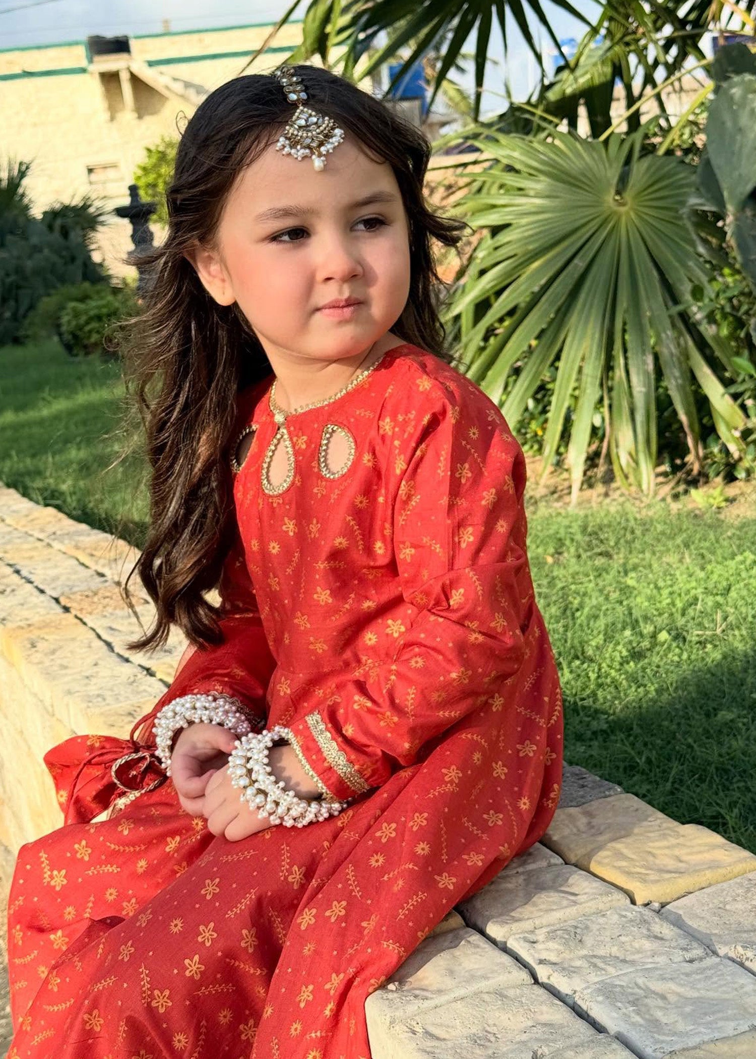 Introduce a splash of color to your child's wardrobe with our Girls' Festive Wear Frock Set