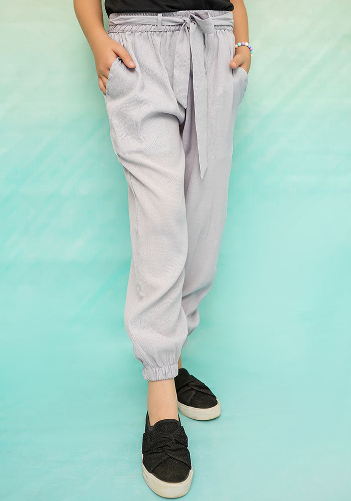 Grey Cotton Crepe Jogger Pants