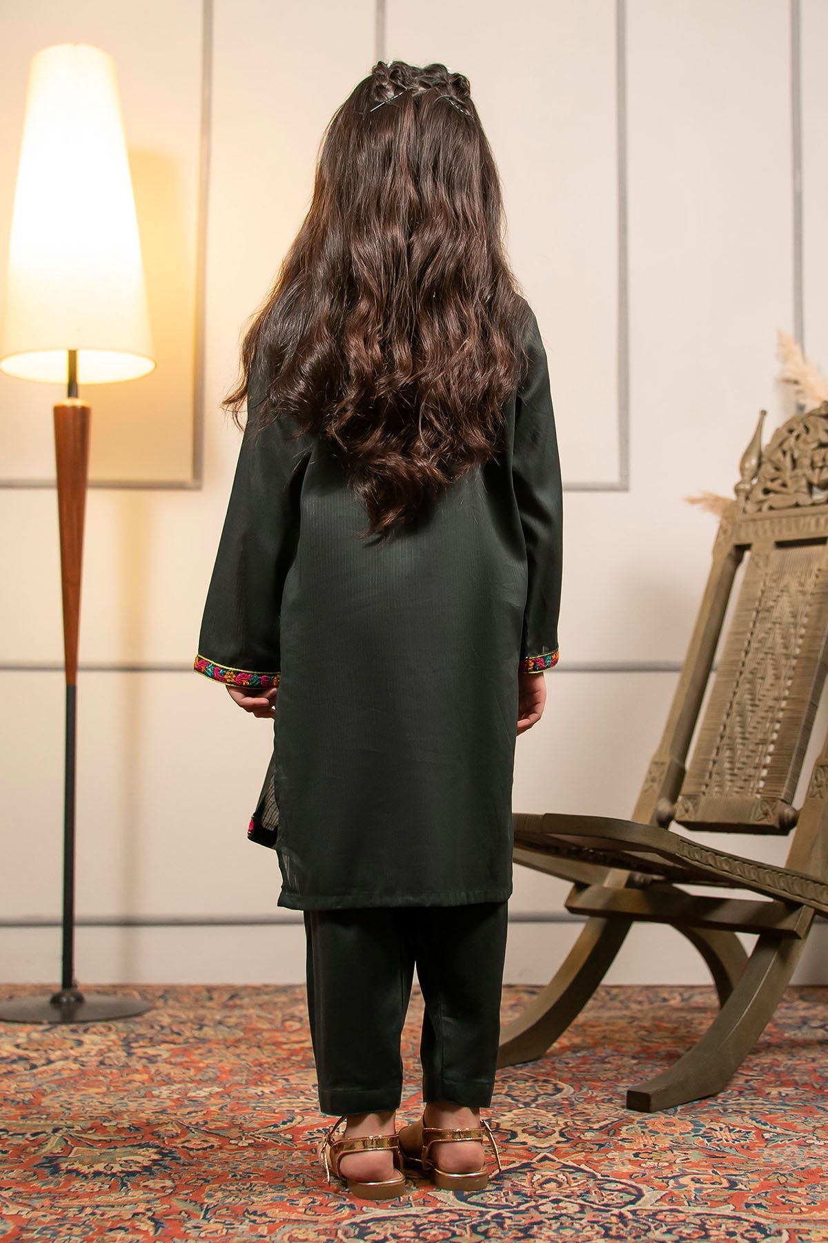 Top: Dark Green Cotton Kurta with EmbroideryBottom: Dark Green Cotton Trouser
