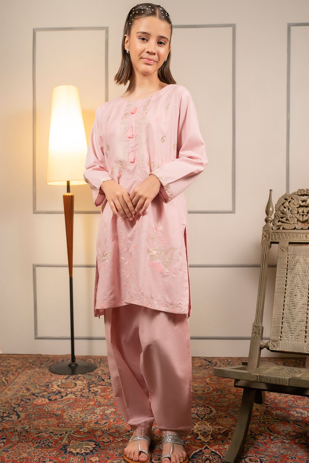 Top: Tea Pink Cotton Kurta with EmbroideryBottom: Tea Pink Cotton Trouser with Embroidery