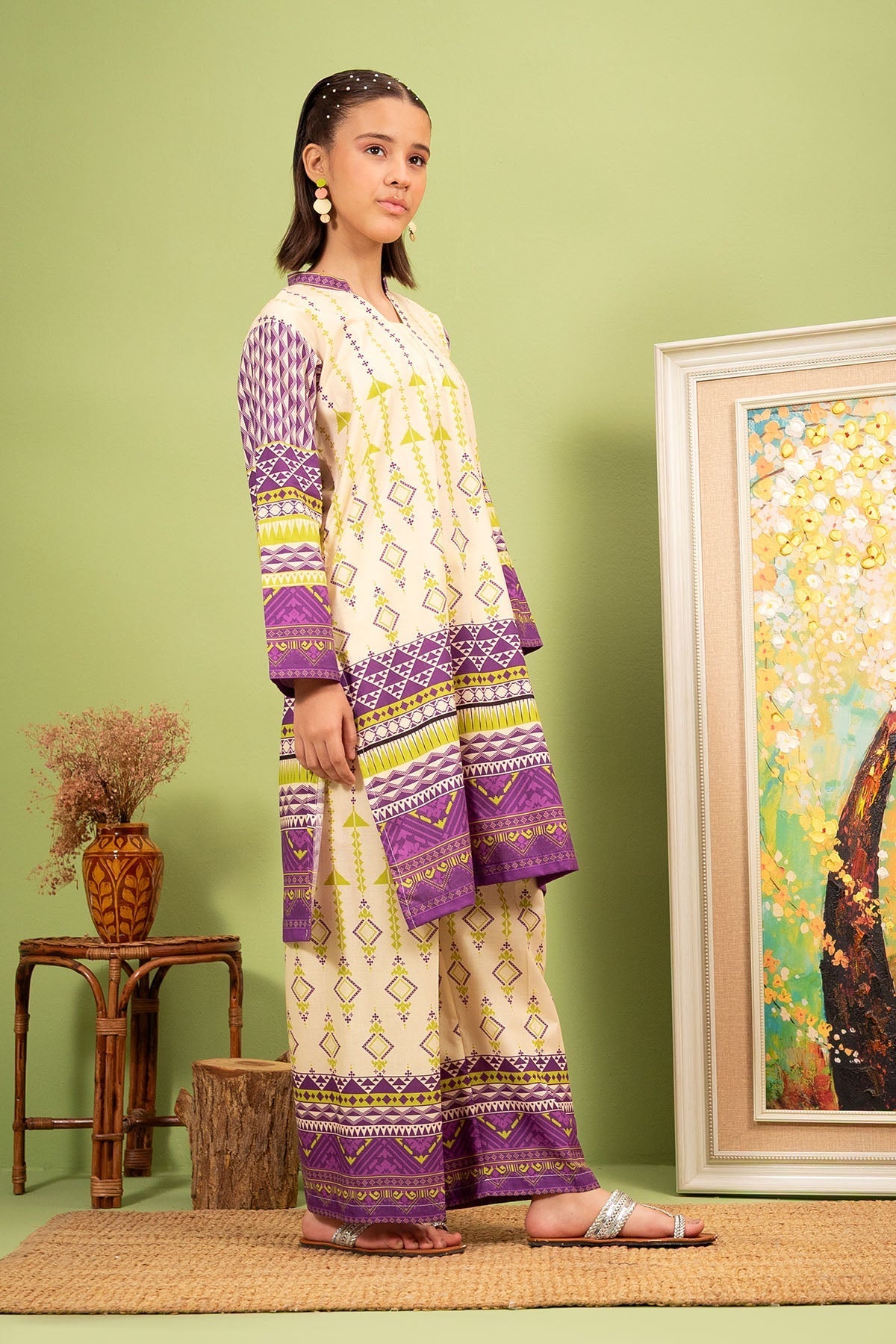 Top: Light Beige Digital Printed Lawn KurtaBottom: Light Beige Digital Printed Lawn Trouser