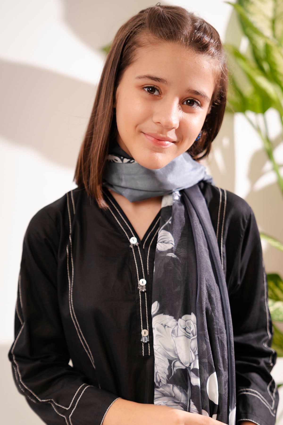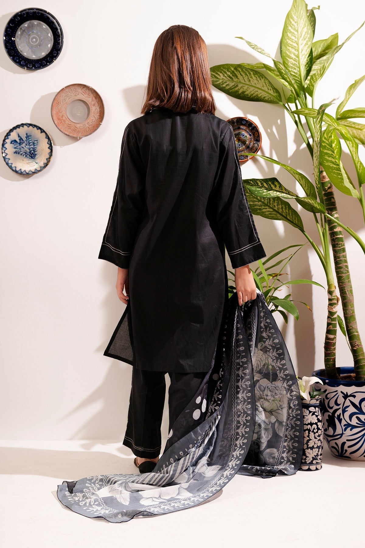 Top: Black Cotton KurtaBottom: Black Cotton Trouser Dupatta: Black Digital Printed Silk Dupatta