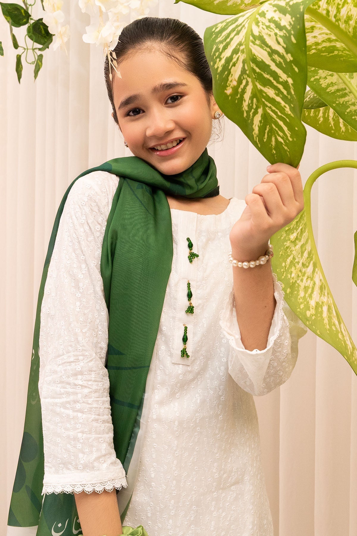 Top: White Chikankari Kurta With Hand Adda Buttons On PlacketBottom: White Cotton Shalwar Dupatta: Silk Digital Printed Dupatta