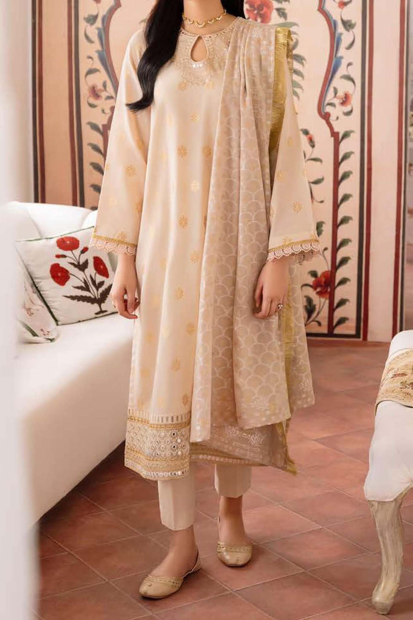 SHIRT 100% COTTON JACQUARD SHIRT 1 EMBROIDERED NECKLINE 40" EMBROIDERED PATTI FOR SHIRT HEM TROUSER DYED CAMBRIC TROUSER 2.5 METER DUPATTA...