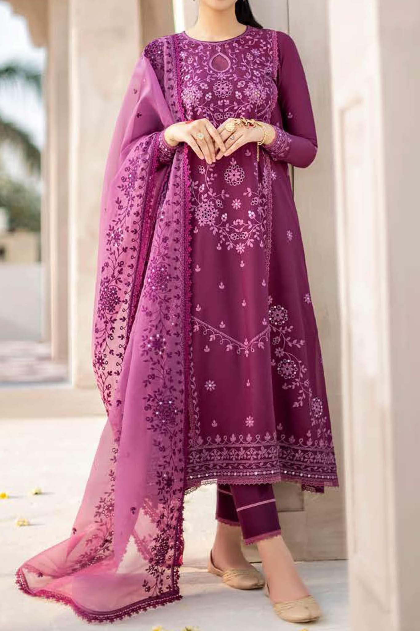 Cross Stitch Unstitched 3 Piece Premium Eid Lawn Collection'2023-10-Bristol Mauve