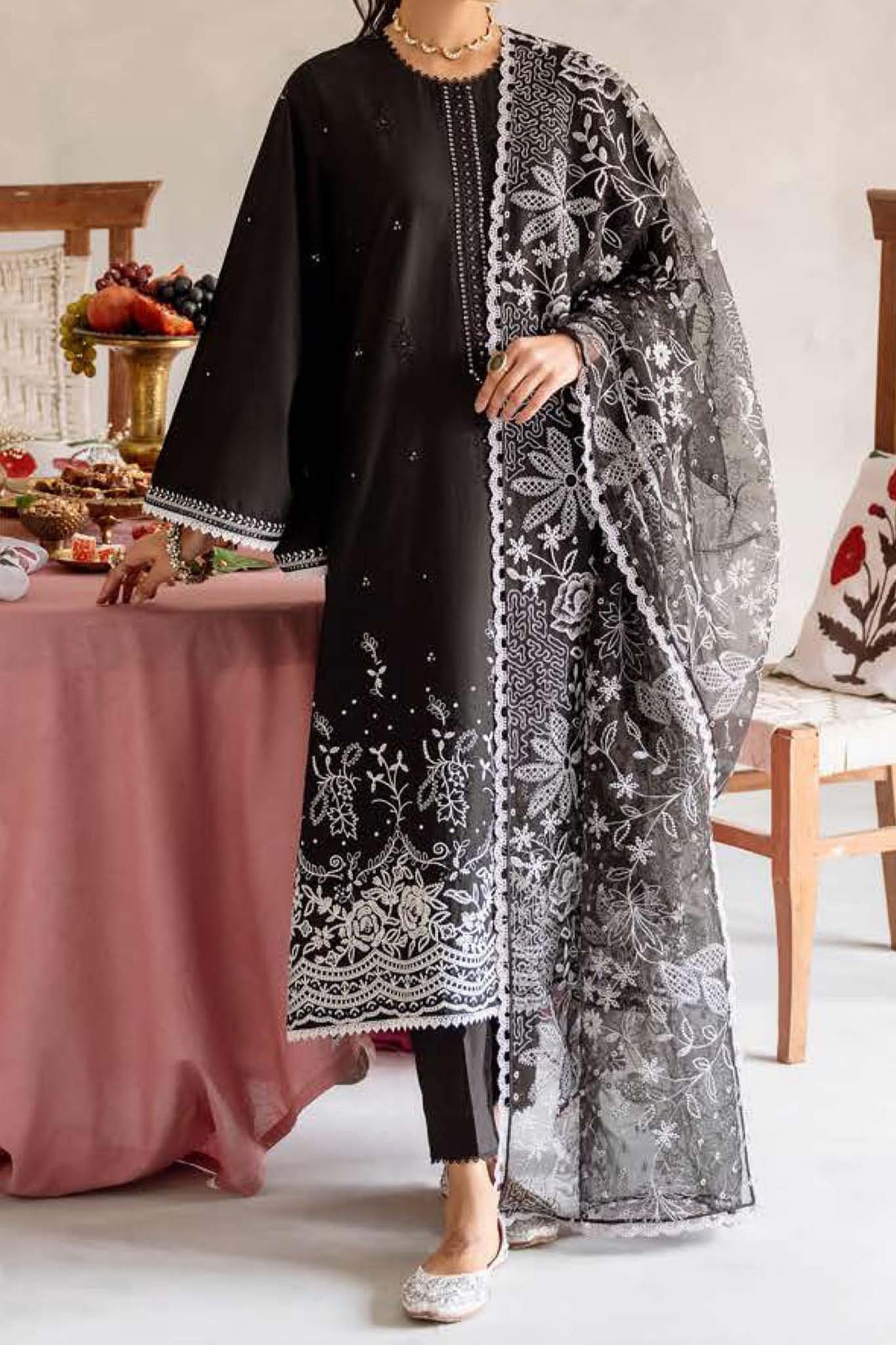 SHIRT DYED EMBROIDERED LAWN FRONT & SLEEVES PASTE PRINTED BACK 1 EMBROIDERED NECKLINE TROUSER DYED CAMBRIC TROUSER 2.5 METER DUPATTA ORGANZA...