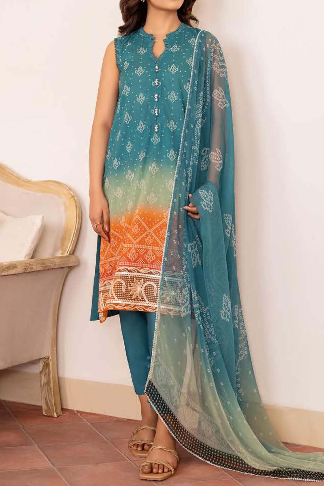 SHIRT DIGITAL PRINTED LAWN SHIRT 3 METER 1 EMBROIDERED NECKLINE 40" EMBROIDERED PATTI FOR SHIRT HEM TROUSER DYED CAMBRIC TROUSER 2.5 METER...