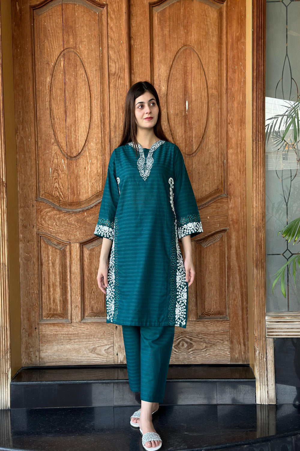 -Cutwork daman and sleeves