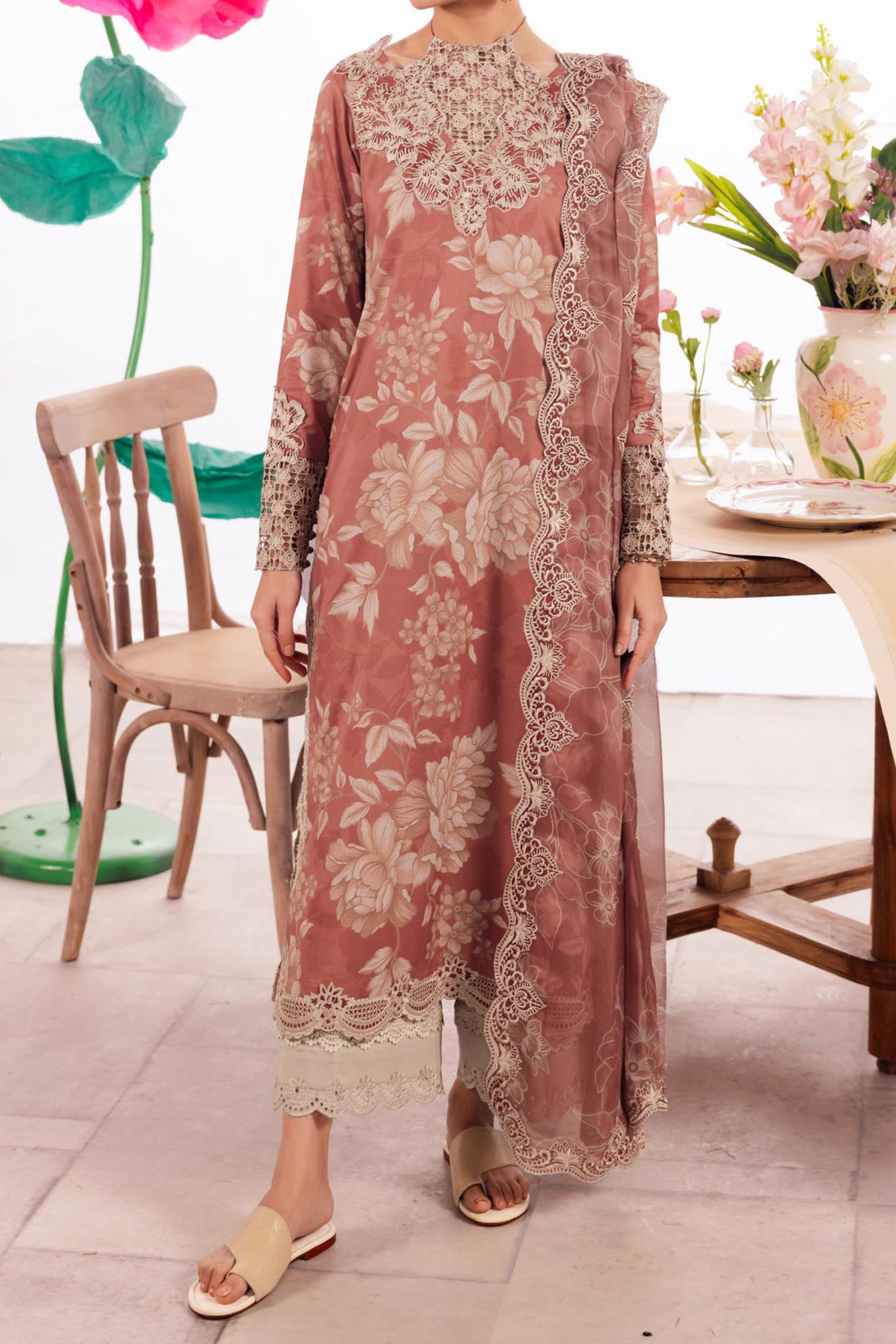 Shirt: Printed Lawn Neckline: Embroidered Organza (1 PC) Neck Lace: Embroidered Organza (0.35 M) Neck Patch: Embroidered Organza (2 PCS)...