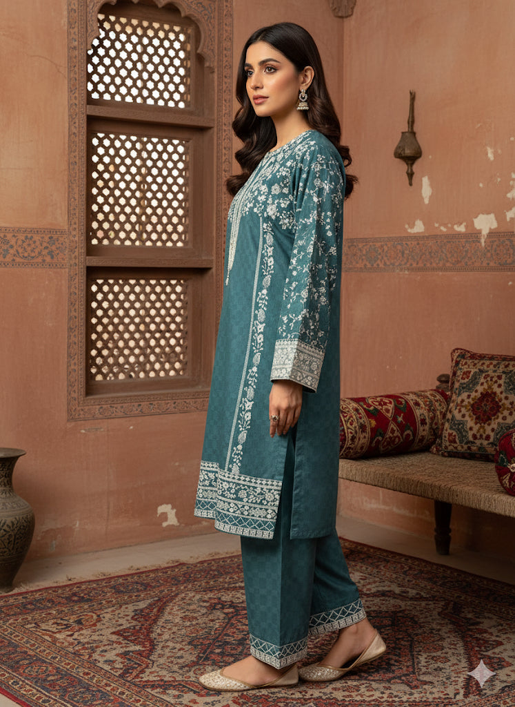 This exquisite Daily/Basic Wear Kurta Set is a winter wardrobe essential. The Straight Cut Kurta in luxurious Cotton Satin features intricate embroidered detailing. Paired with a classic Straight Trouser in comfortable Cotton fabric, this 2-piece set in sleek Black exudes elegance. Elevate your everyday style with this wardrobe staple from Flutterby.