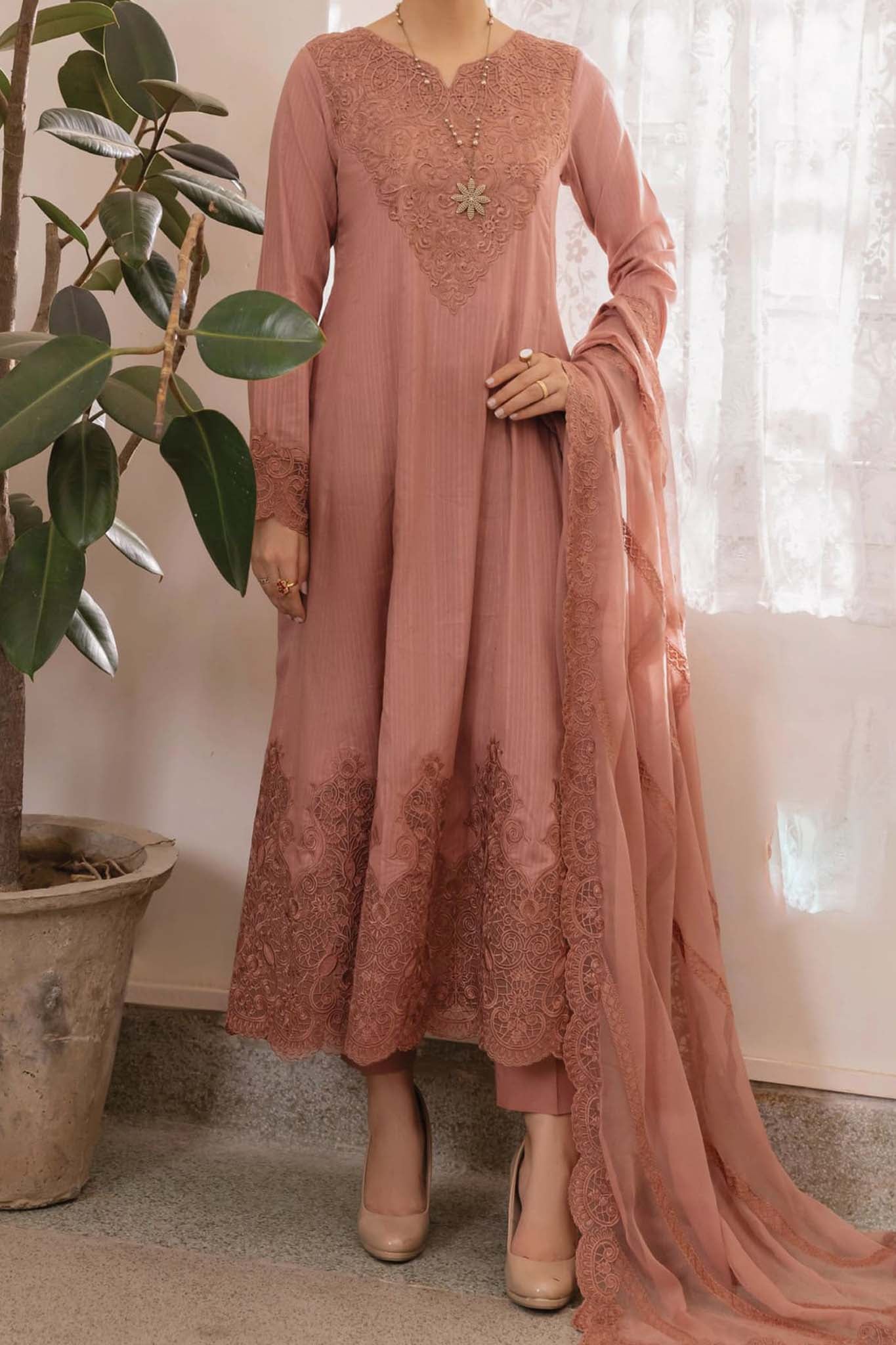Shirt Front, Back & Sleeves: Dyed Textured Lawn (length 2.5 M) (Width 1.35 M) Neckline: Embroidered Organza(1 Piece) Shirt Front...