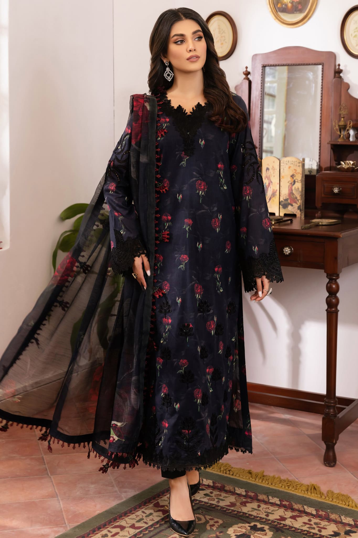 Shirt Front: Printed Borer Embroidered Lawn (1.25 M) Shirt Back: Printed Lawn (1.25 M) Neckline: Embroidered Organza (1 Piece) Front...