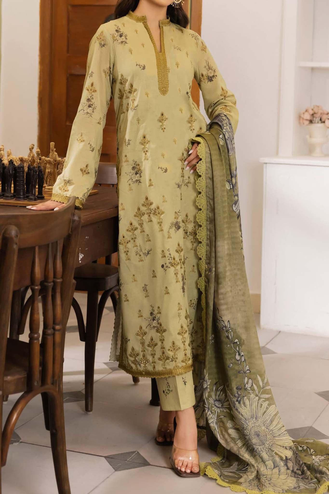 Shirt Front: Printed Borer Embroidered Lawn (1.20 M) Shirt Back: Printed Lawn (1.25 M) Neckline: Embroidered Organza (1 Piece) Necklace:...