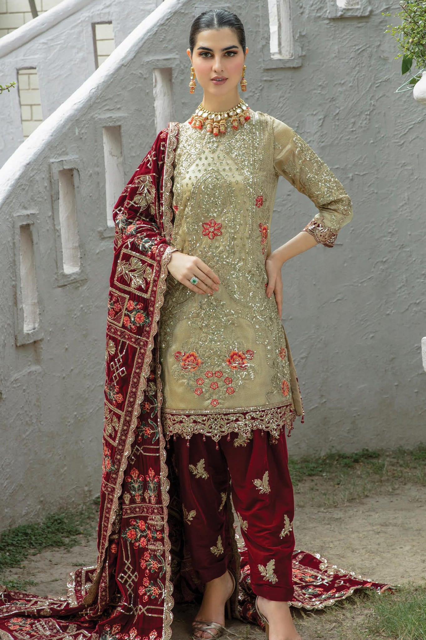Embroidered zarri jacquard for front. Embroidered velvet border for front. Plain zarri jazquard for back. Embroidered velvet border for back....