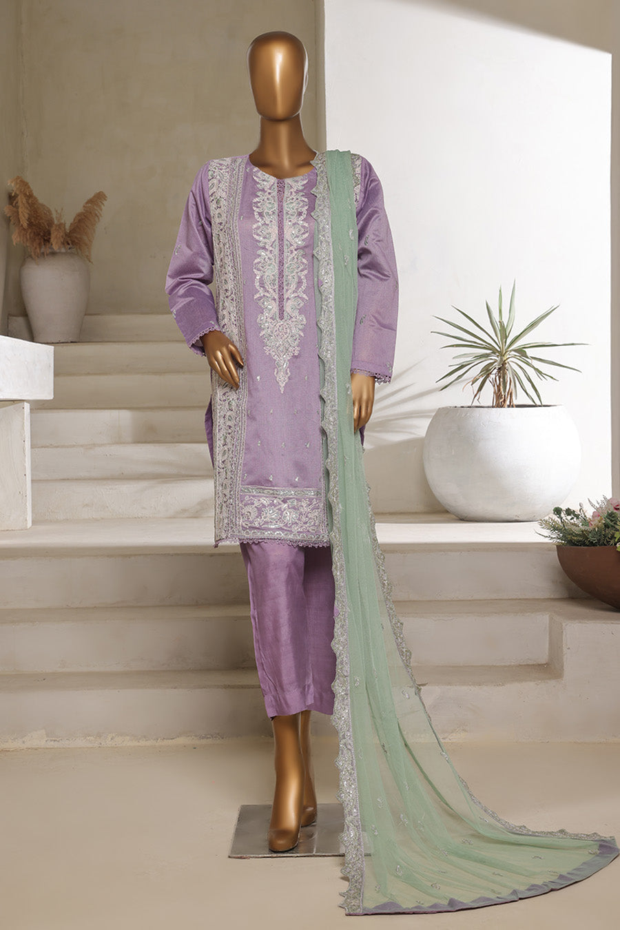 Dupatta: Dyed Embroidered Net
