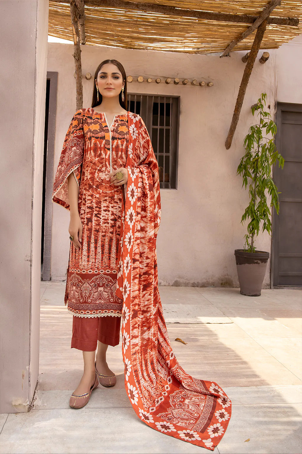 Desire by Johra Unstitched 3 Piece Digital Printed Leather Peach Collection'2022-JH-62