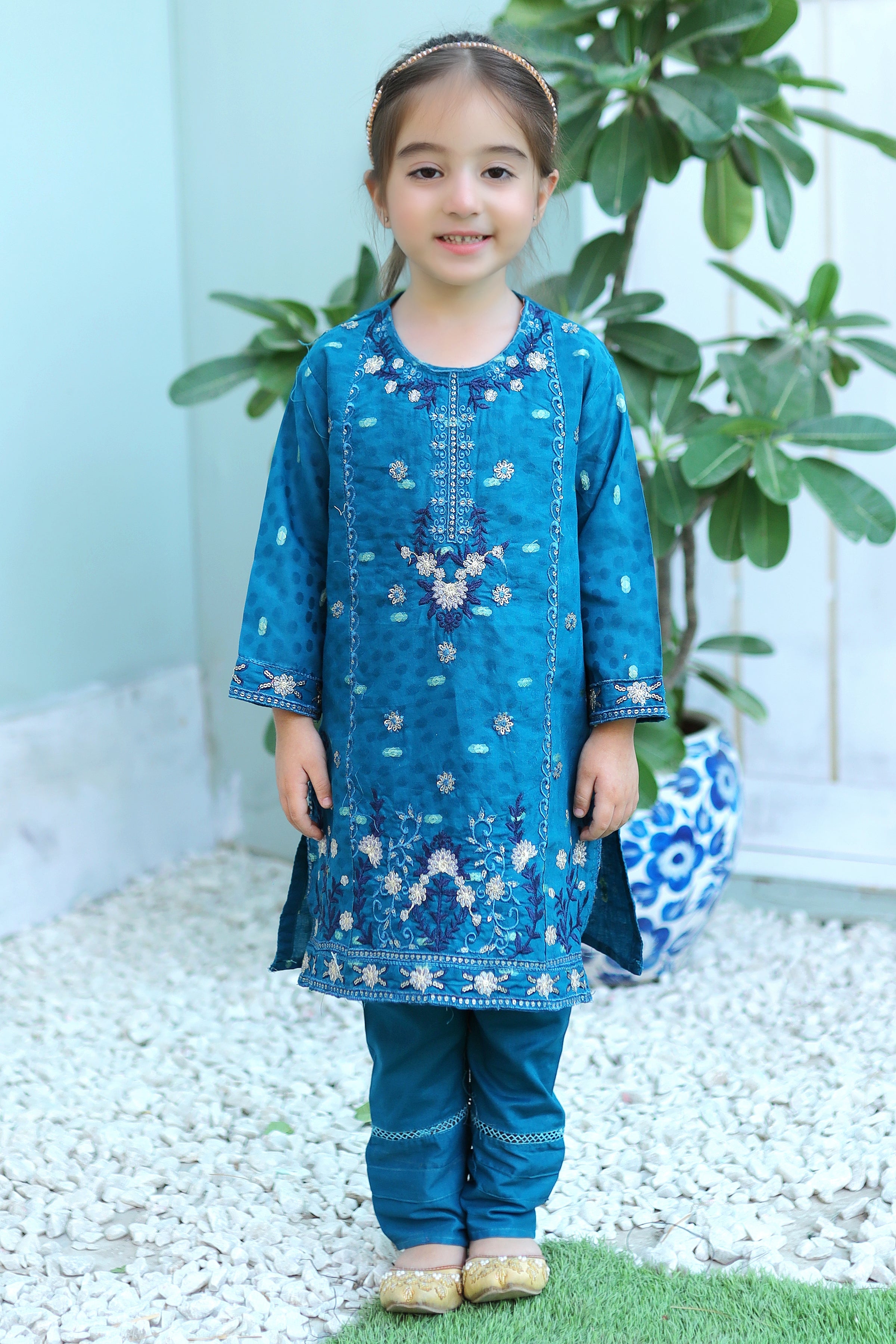 Color: Dodger Blue Design/Cut 2-Pcs Straight Shirt and Gharara