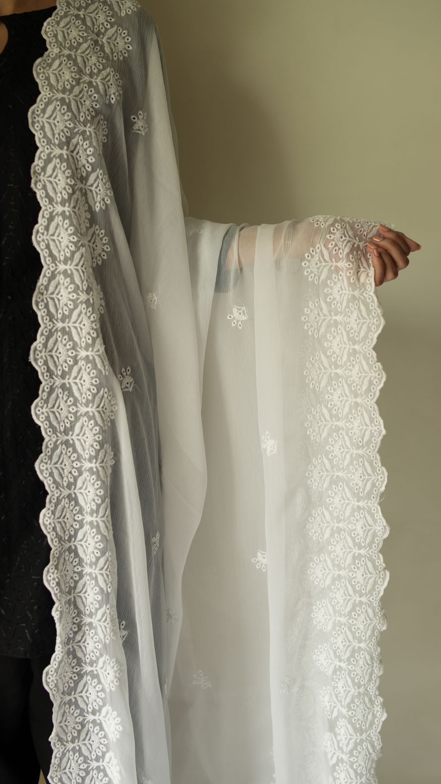 Off-white, dyeable chiffon dupatta with embroidery