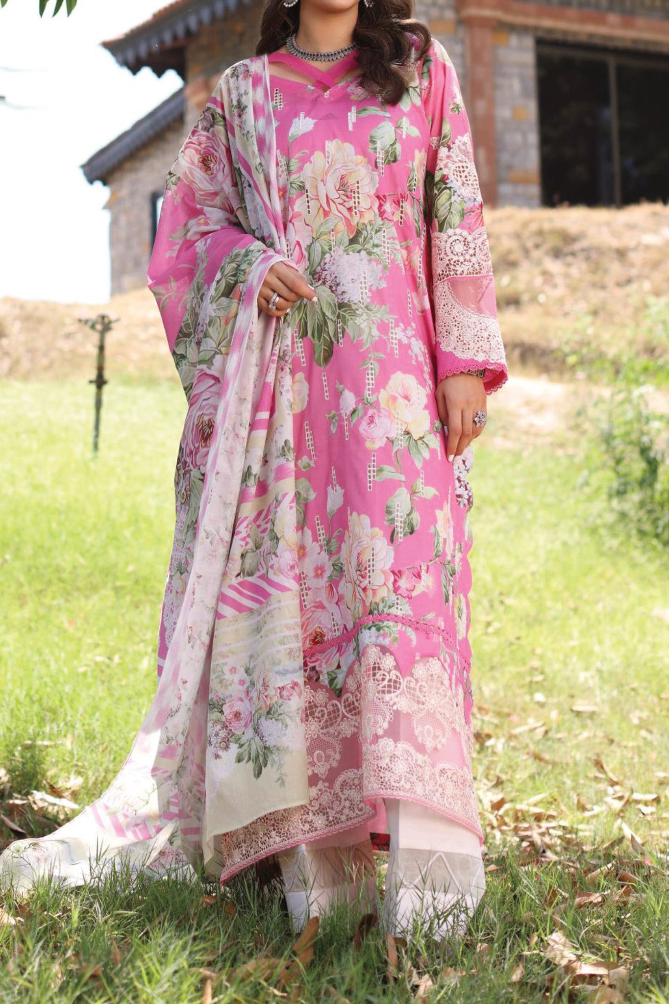 Elaf Prints Unstitched 3 Piece Printed Chikankari Lawn Collection'2024-ECK-03-B-Pink Muse