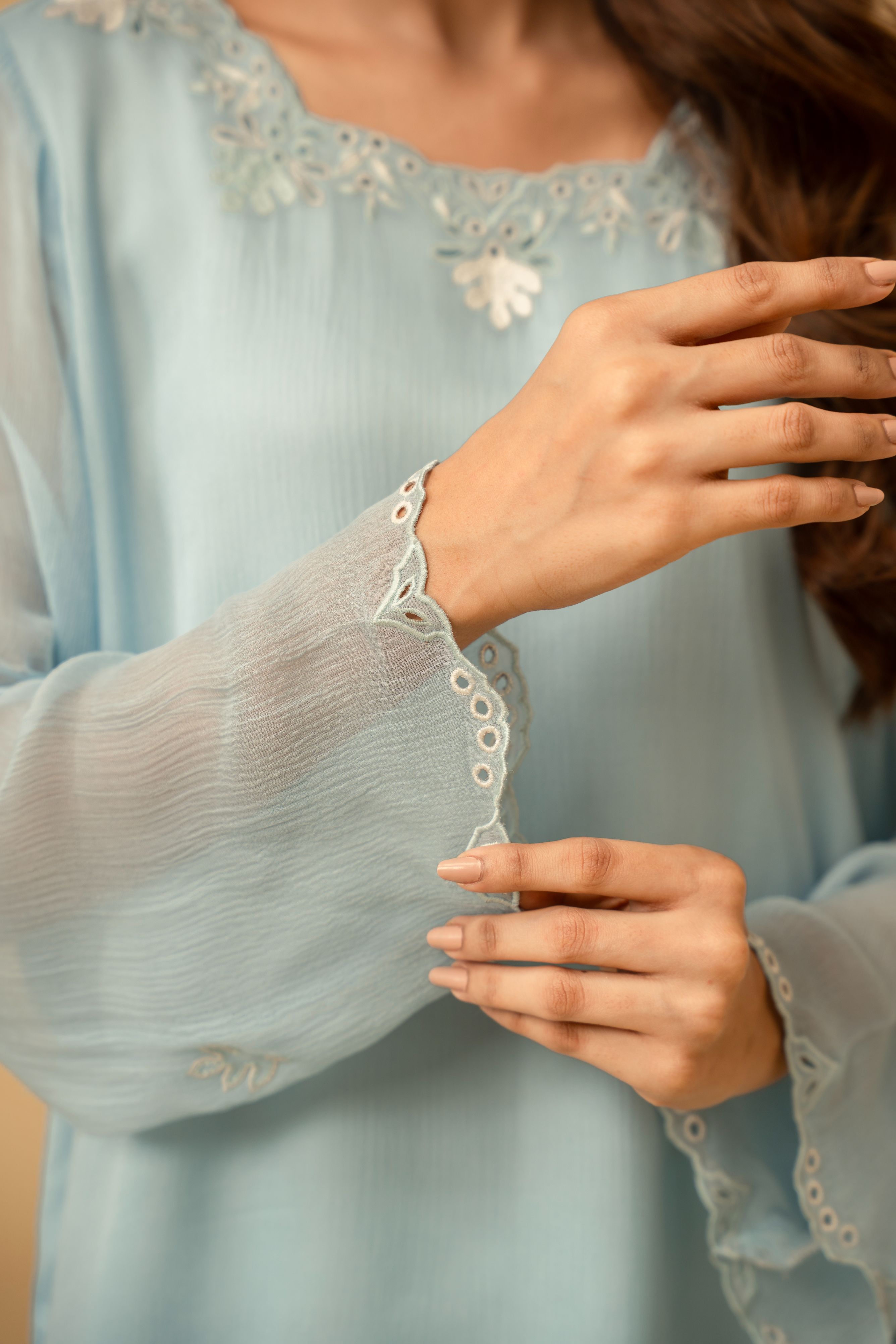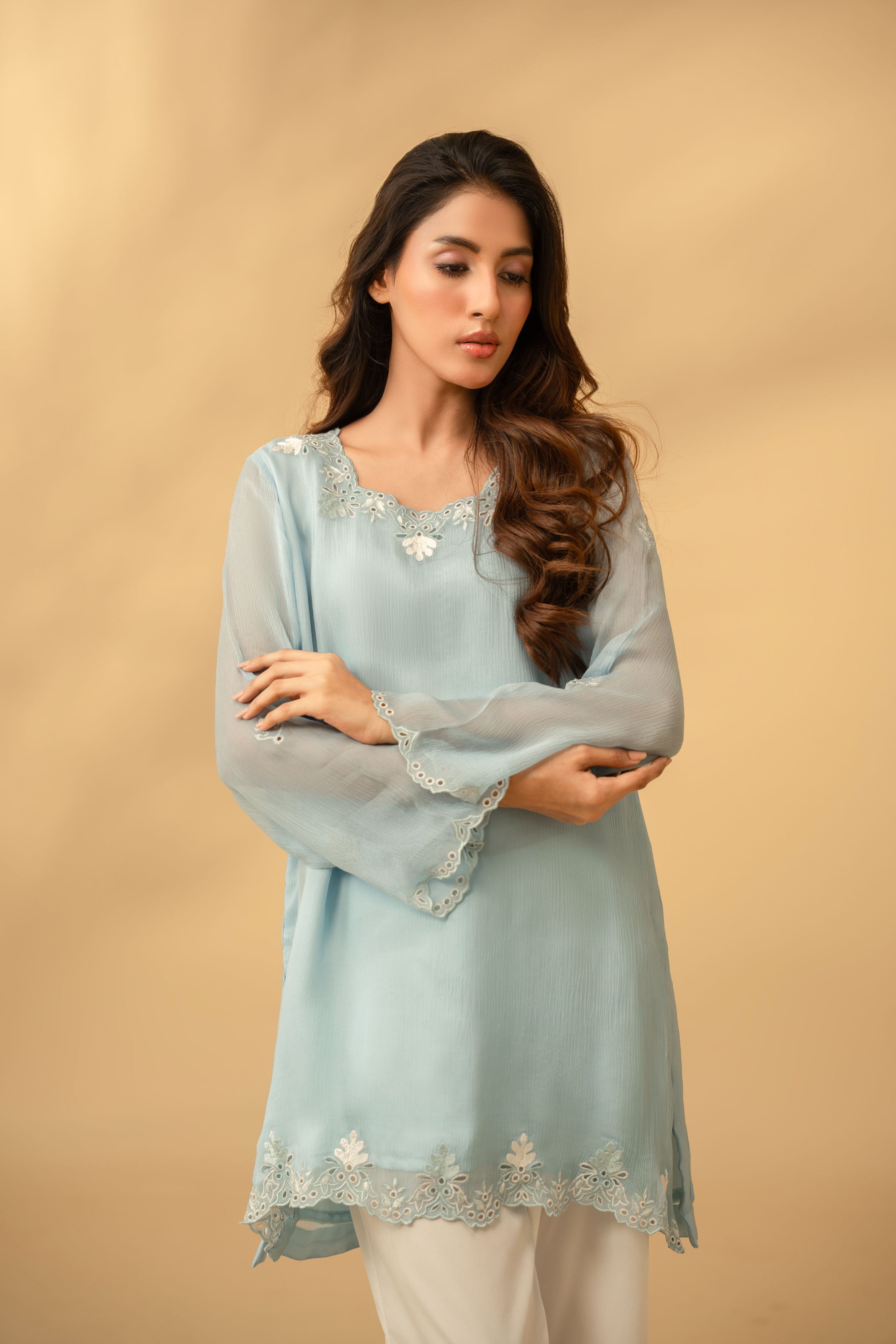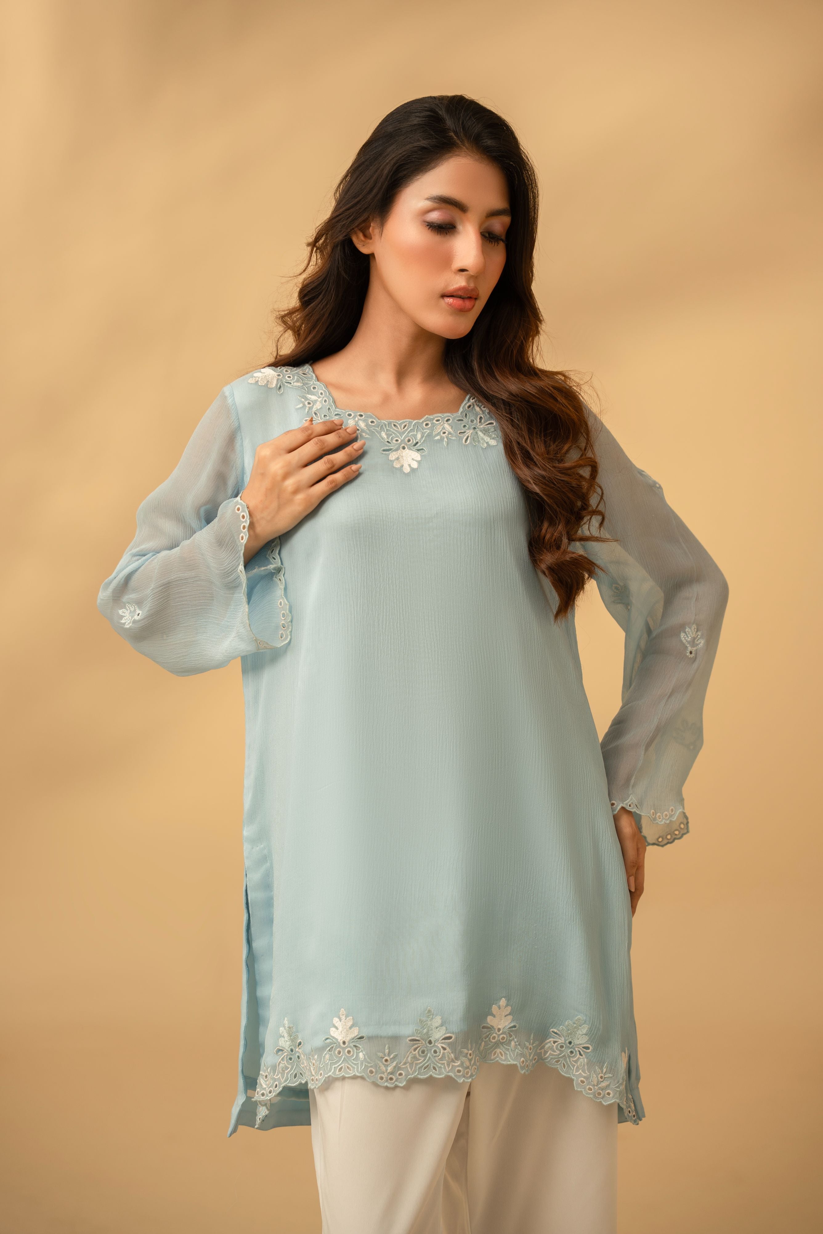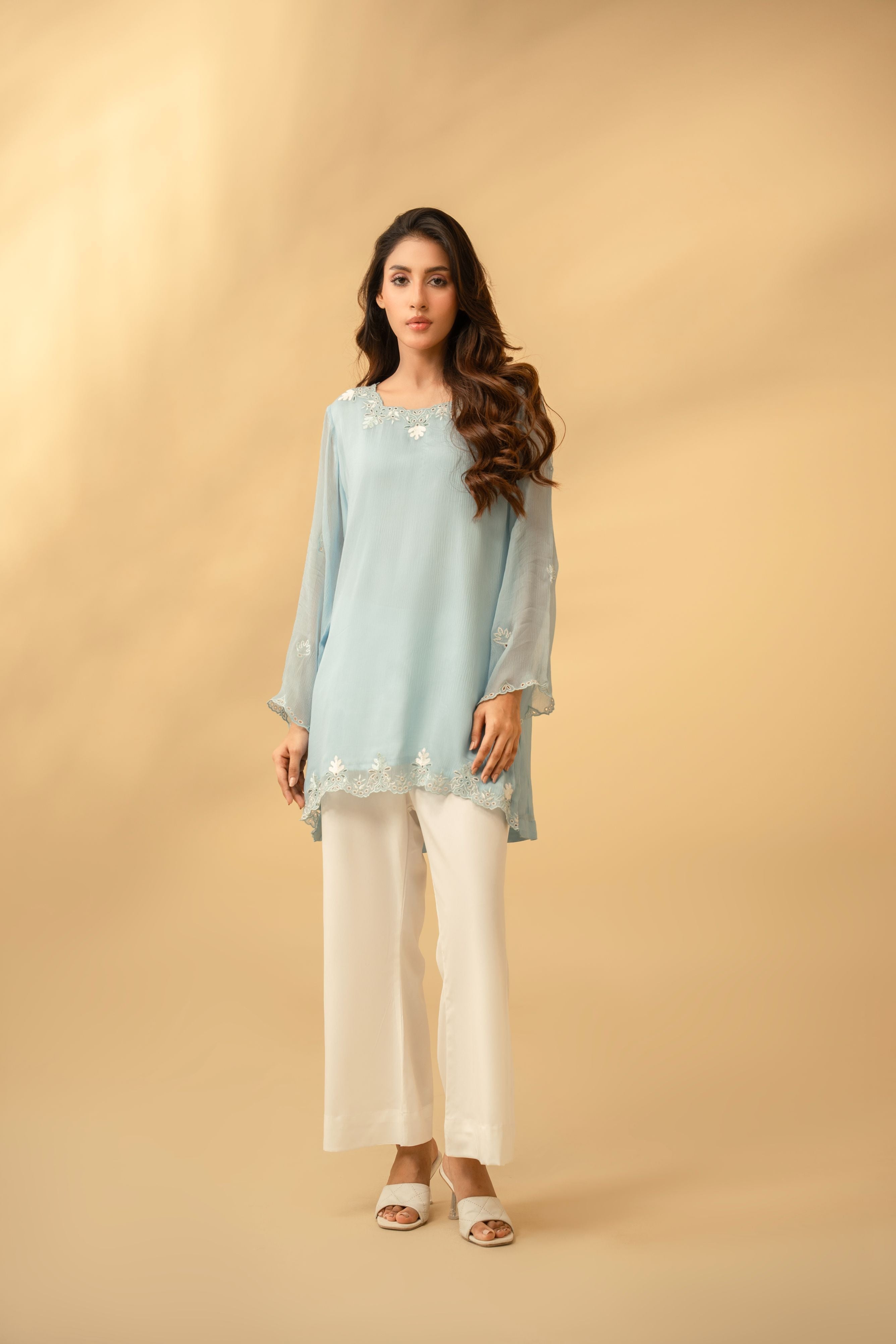 Crafted from a premium, lightweight fabric, the silhouette drapes fluidly with an ethereal softness, allowing the garment to move effortlessly with the wearer. The relaxed yet structured cut ensures comfort without compromising refinement, making it an ideal choice for refined daytime gatherings, intimate celebrations, and understated festive moments.
