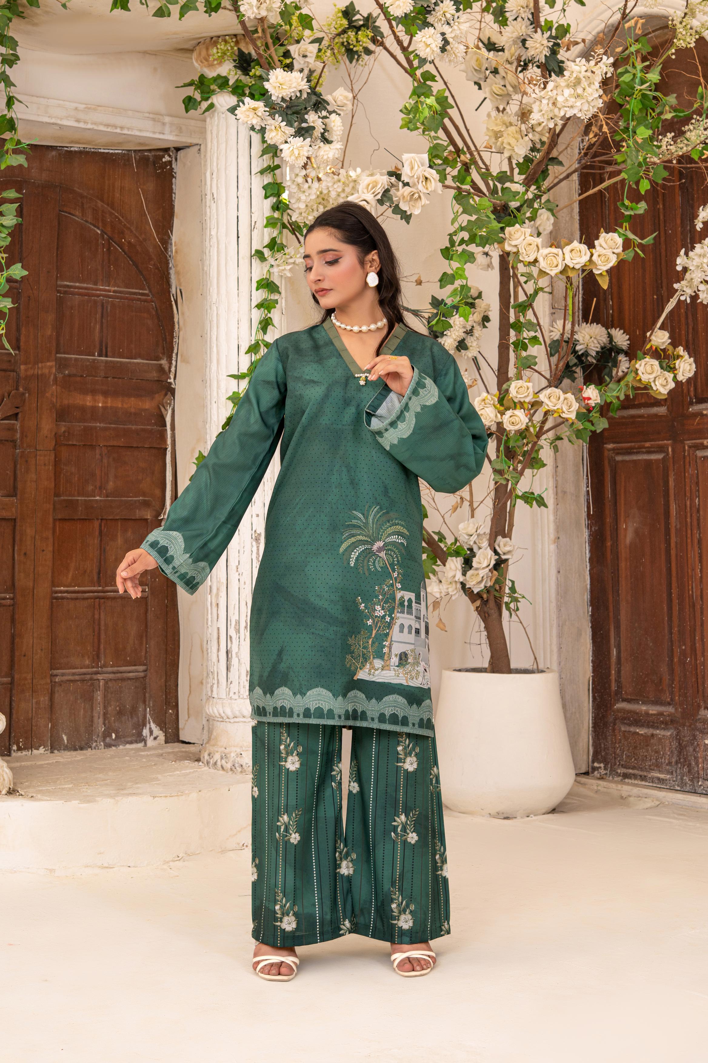 Printed 2 pieceLong length shirt with trouserFabric: Poly Lawn