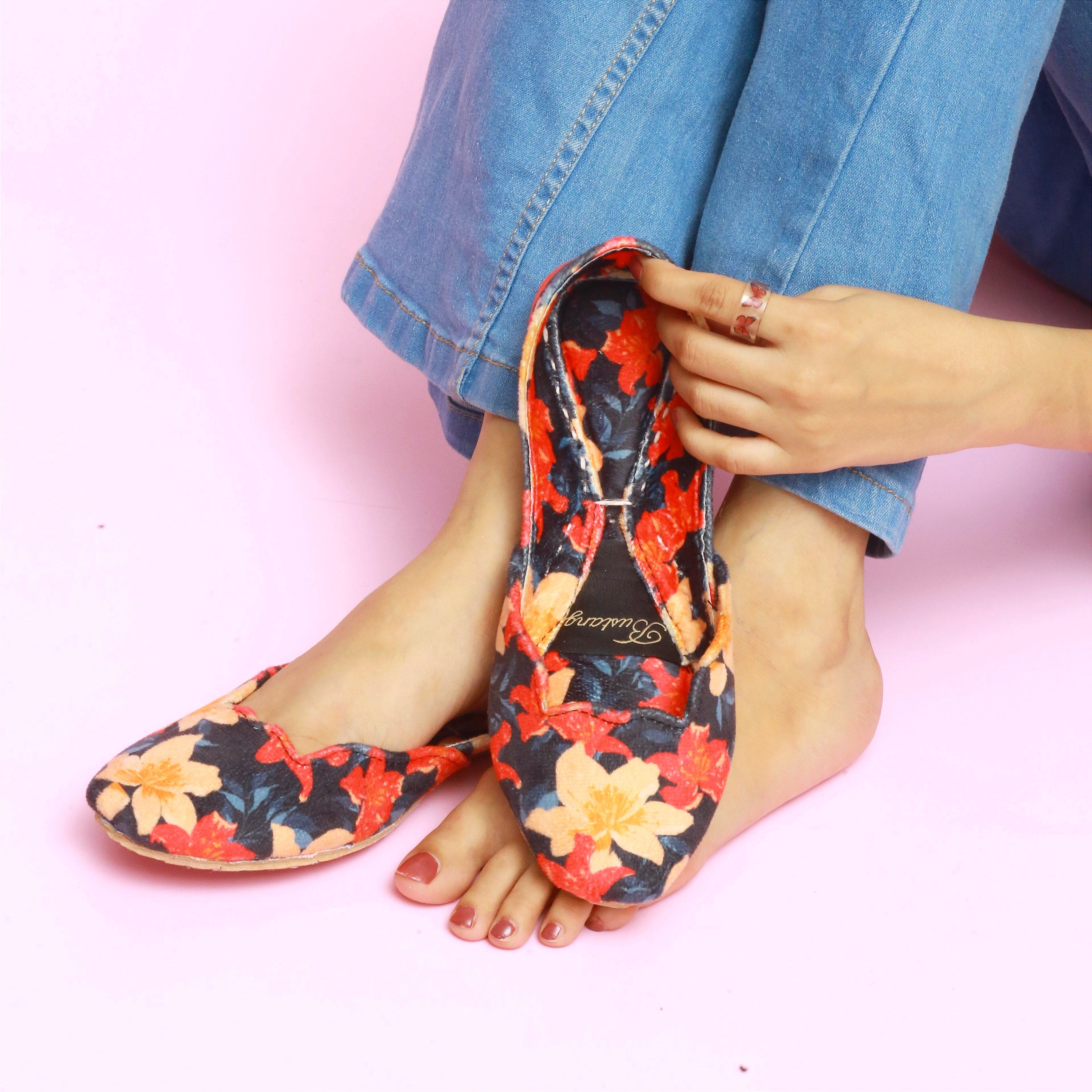 Bustangi presents you exclusive Printed Rangreza Collection. This one is Printed Ladies khussa. With velvet on top, It's made up of leather sole and double padding for additional comfort. Best for casual wear in summers and winters.