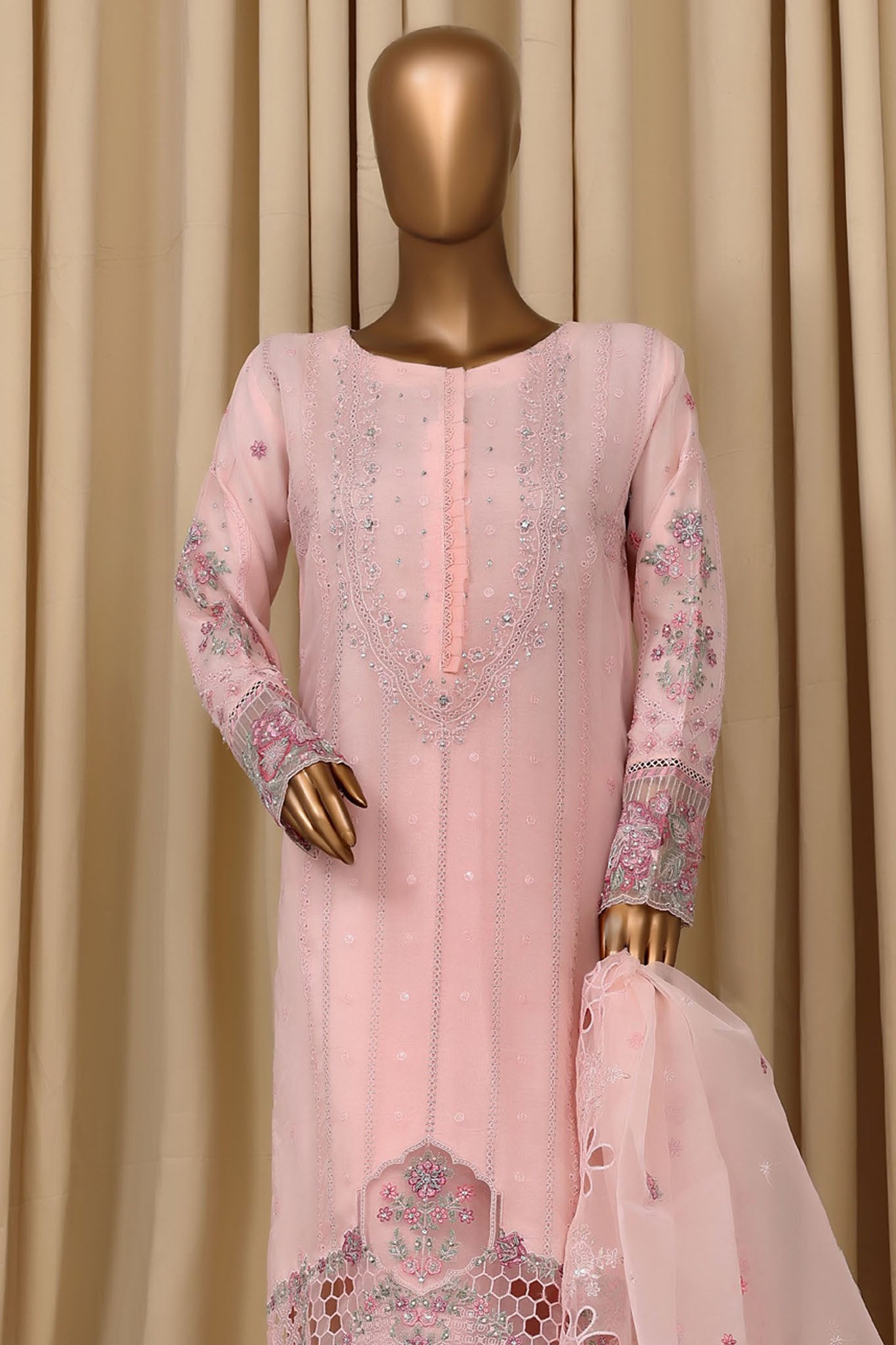 Falsafaa By HZ Stitched 3 Piece Emb Organza Vol-07 Collection'2025-HZK-219-Pink