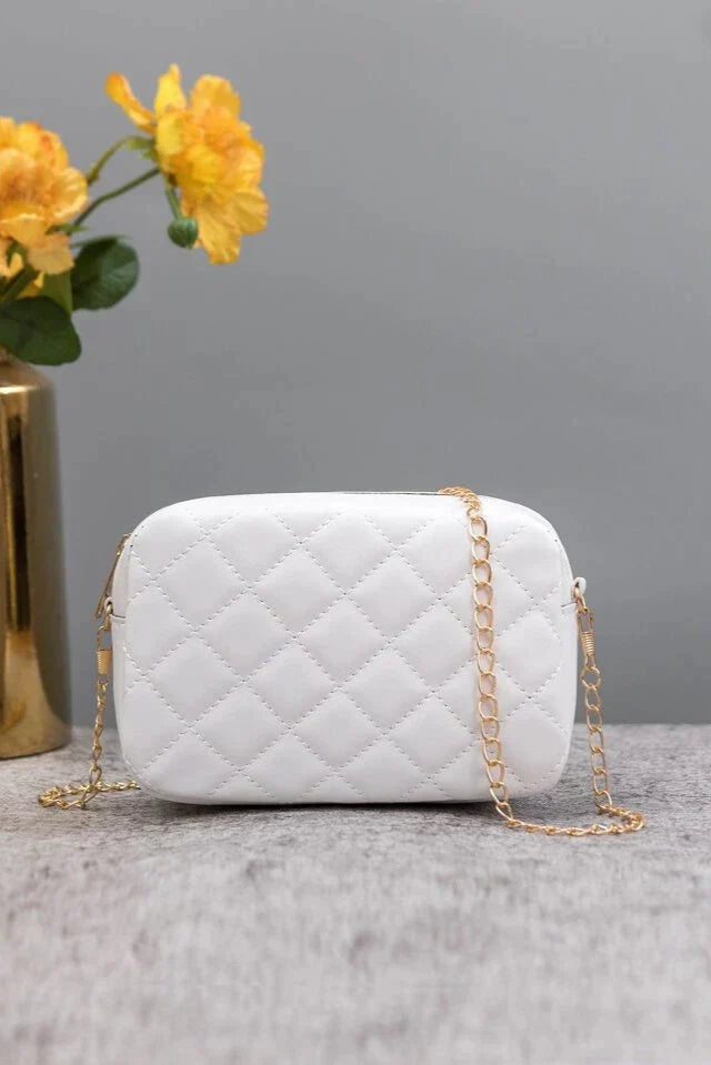FIneur's Little Hand Quilted Chain Crossbody Bag with long gold chain