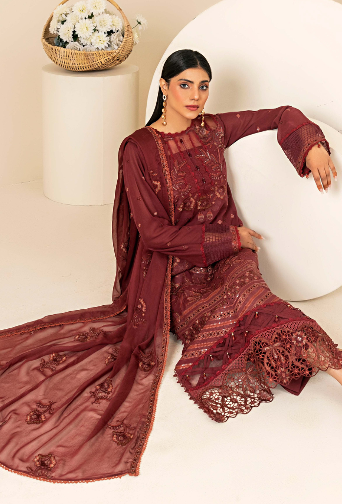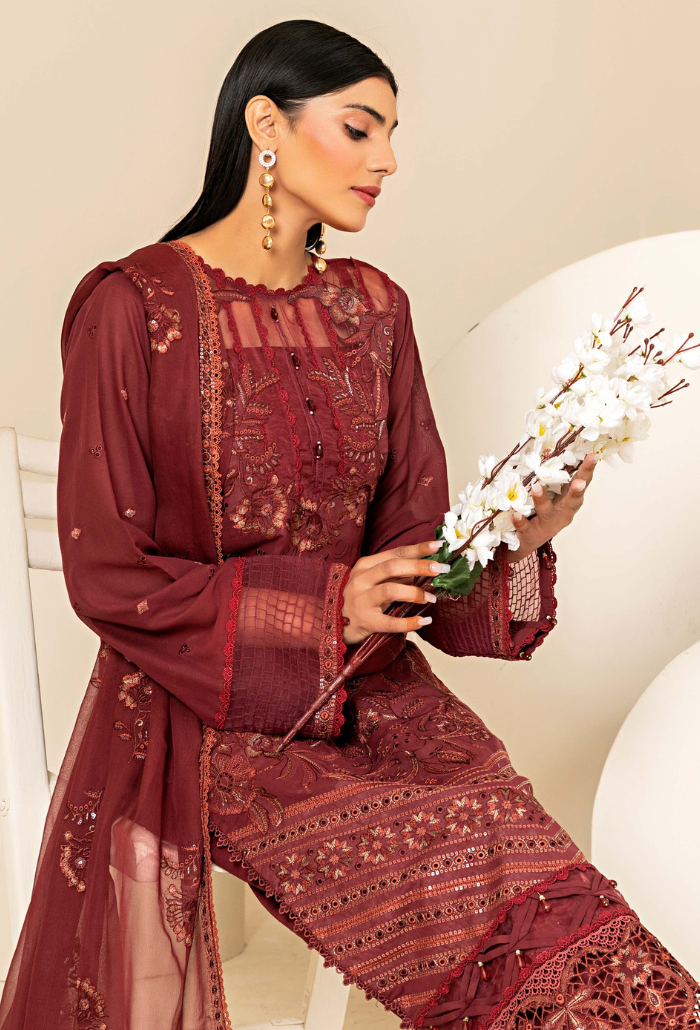 Shirt Fabric - Swiss LawnEmbroidered Swiss Lawn Shirt 3 MTRSChiffon Embroidered Dupatta 2.5 MTRSPlain Cotton Trousers 2.5 MTRS