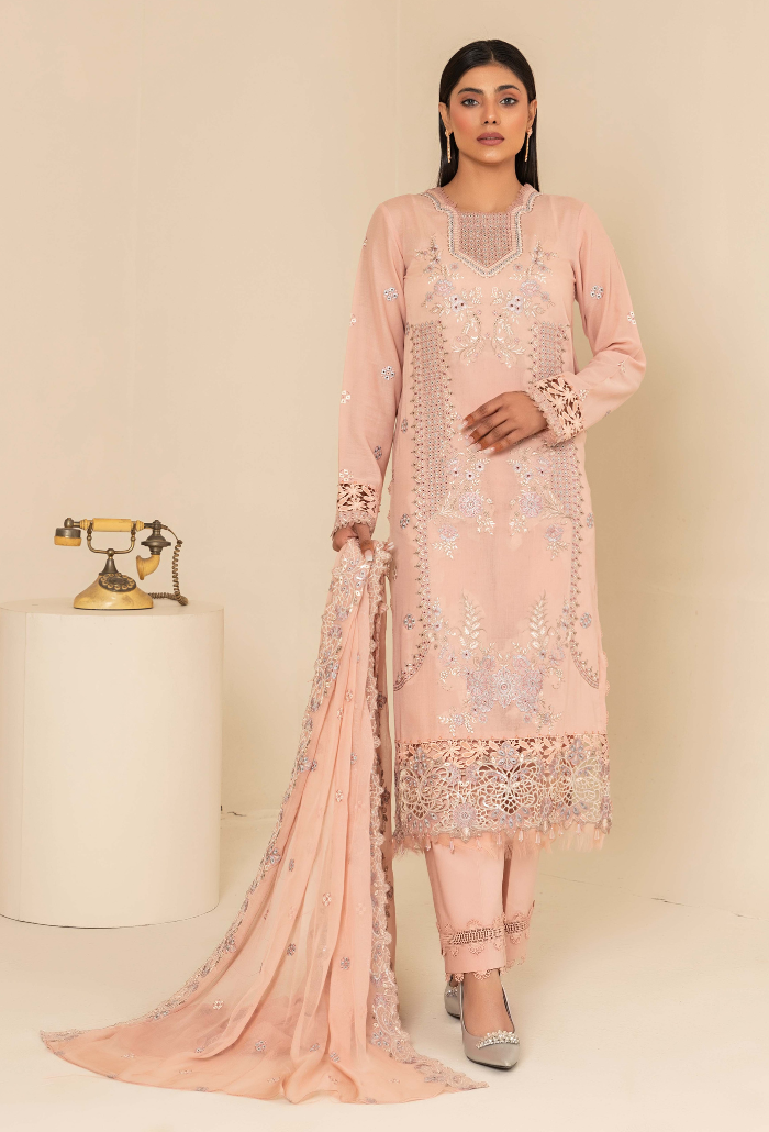 Shirt Fabric - Swiss LawnEmbroidered Swiss Lawn Shirt 3 MTRSChiffon Embroidered Dupatta 2.5 MTRSPlain Cotton Trousers 2.5 MTRS(Included Embroidered Accessory)